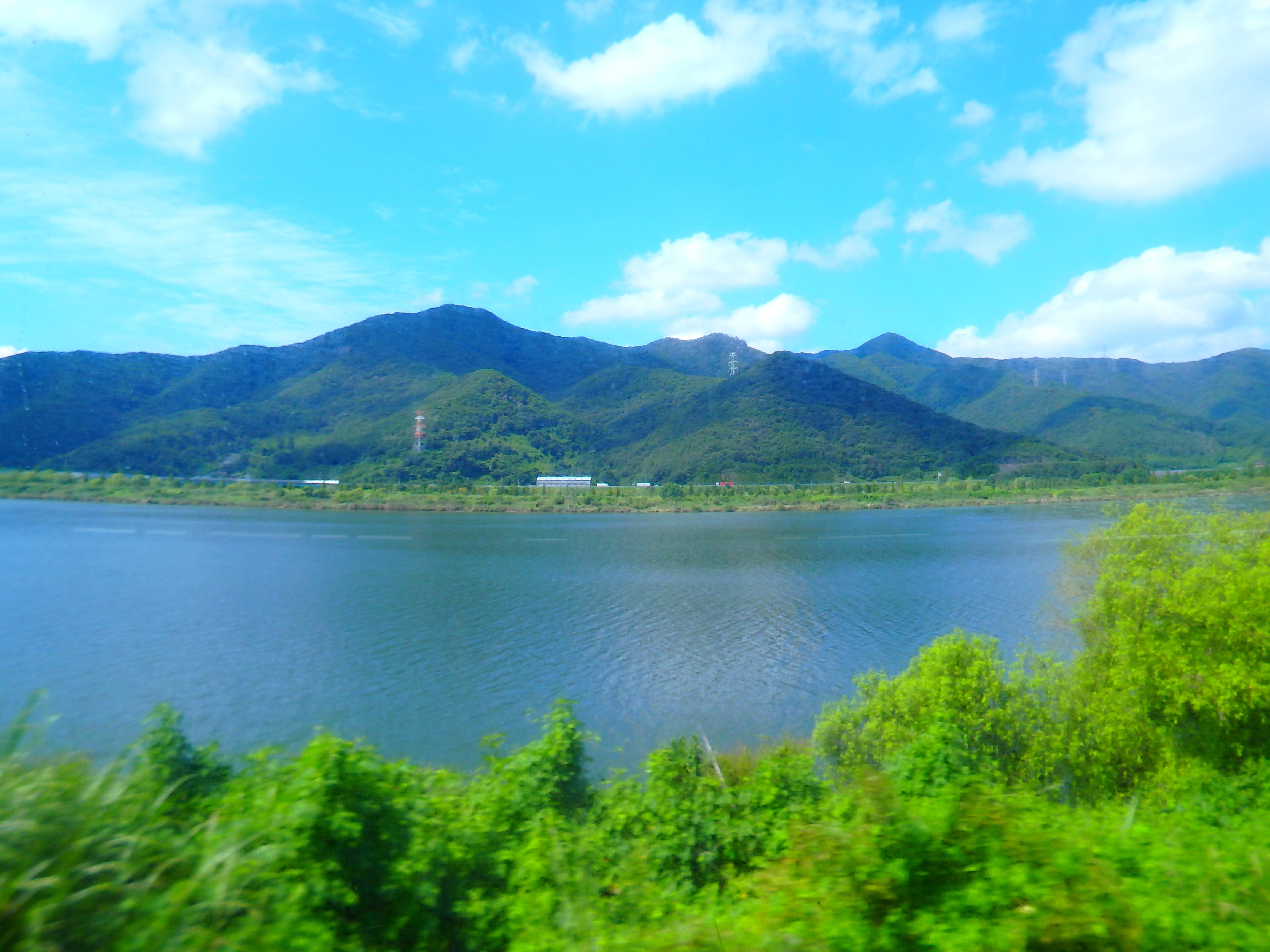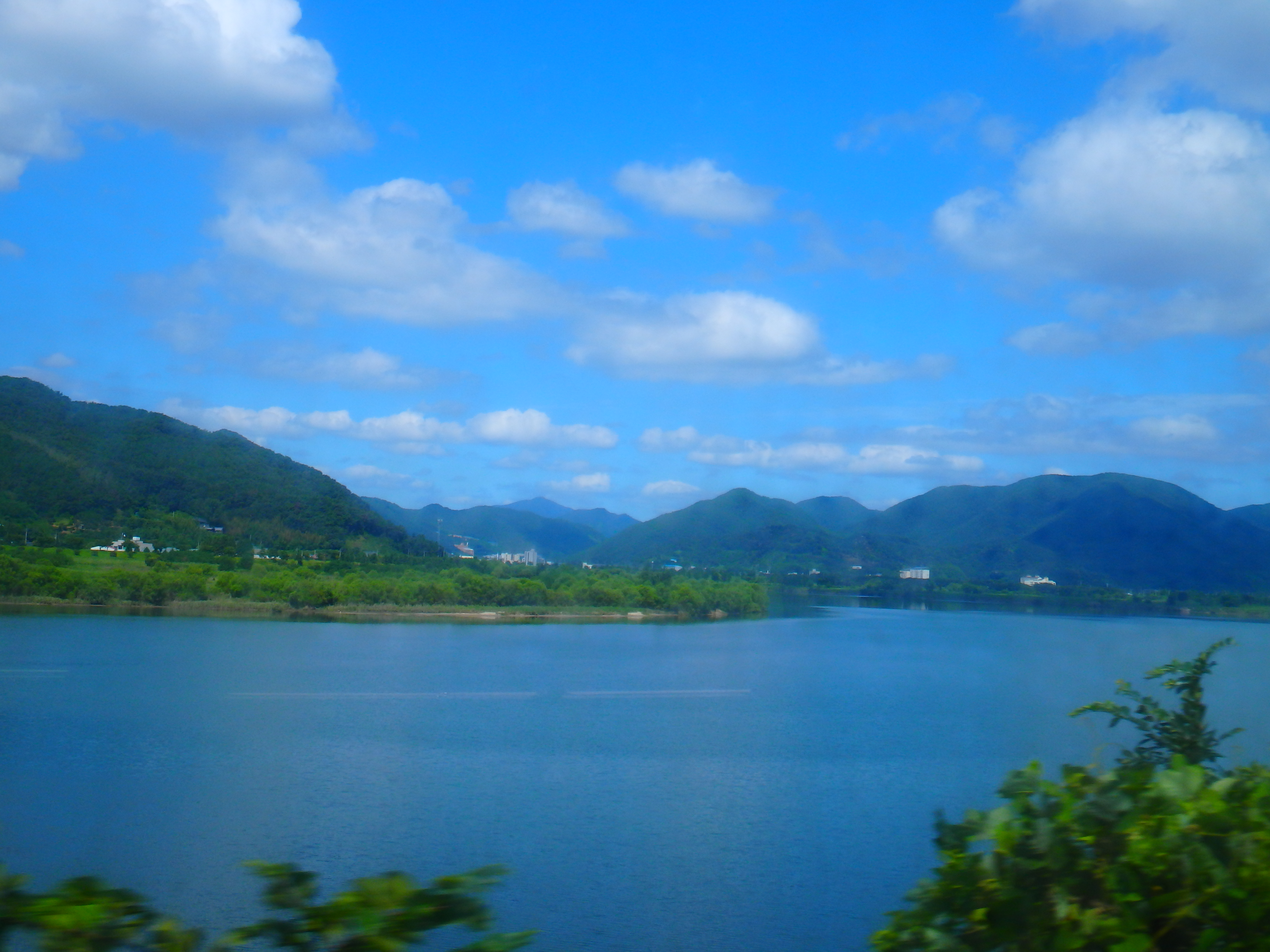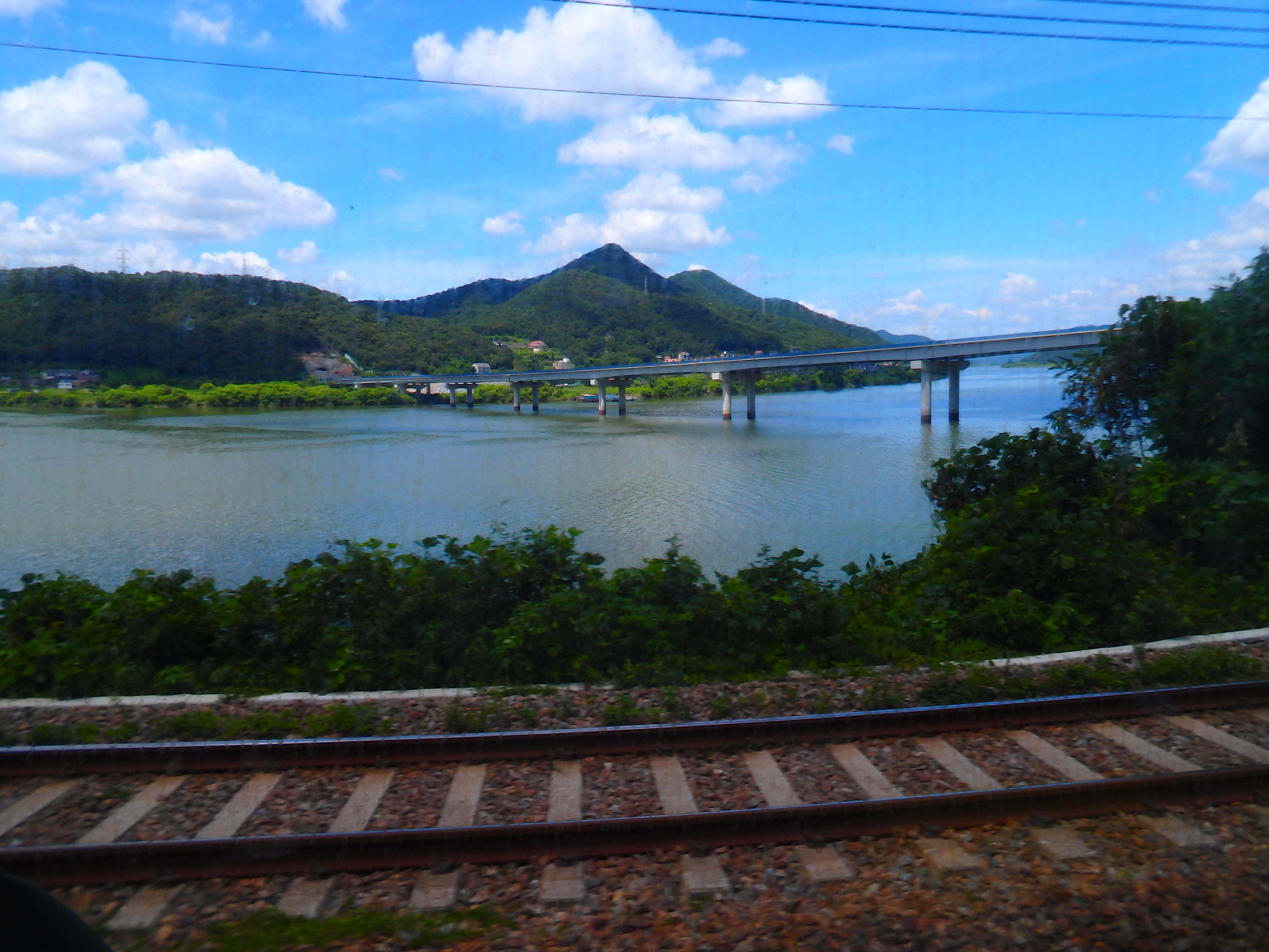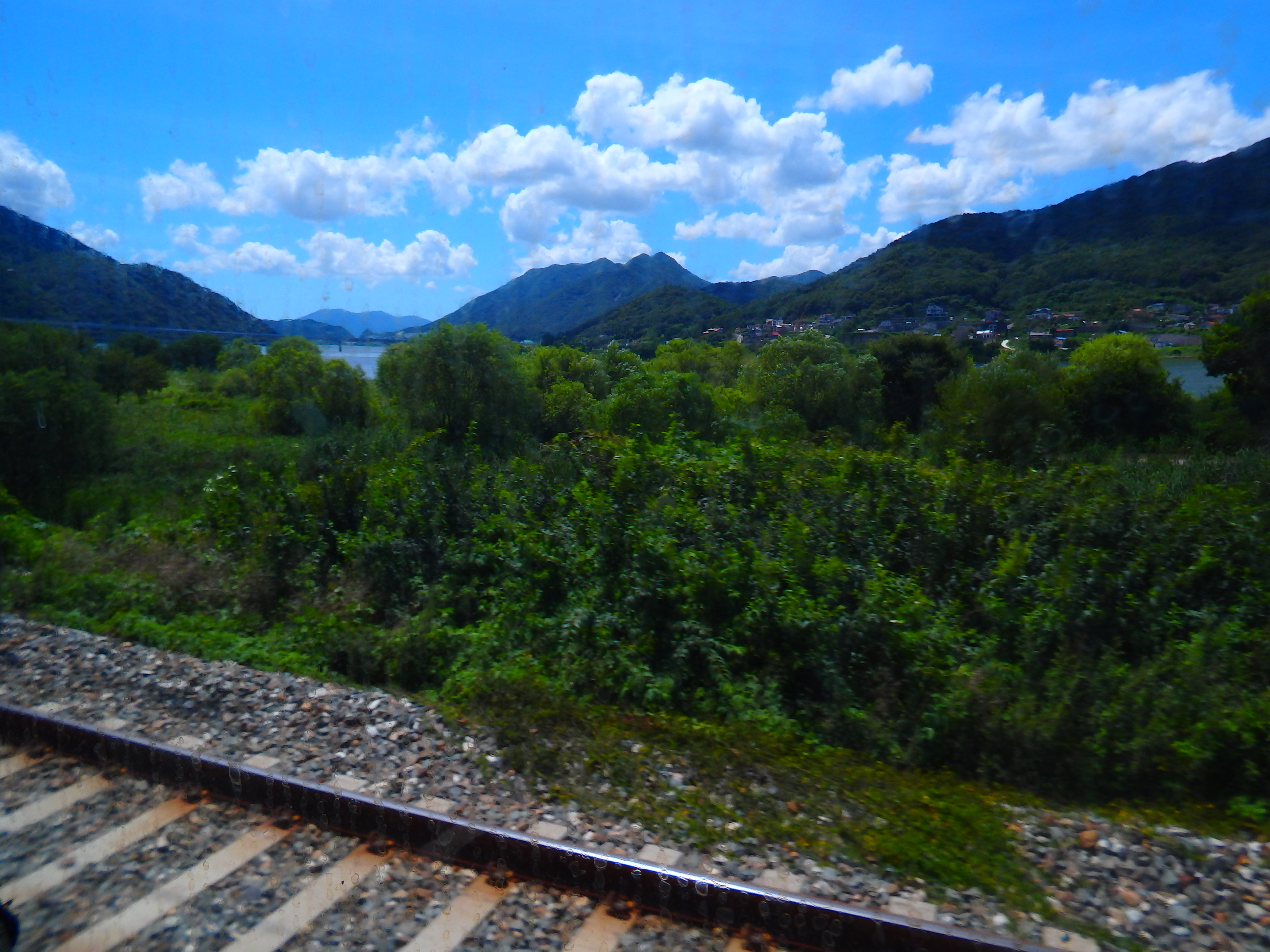 기차를 타고 차창밖을 내다보며