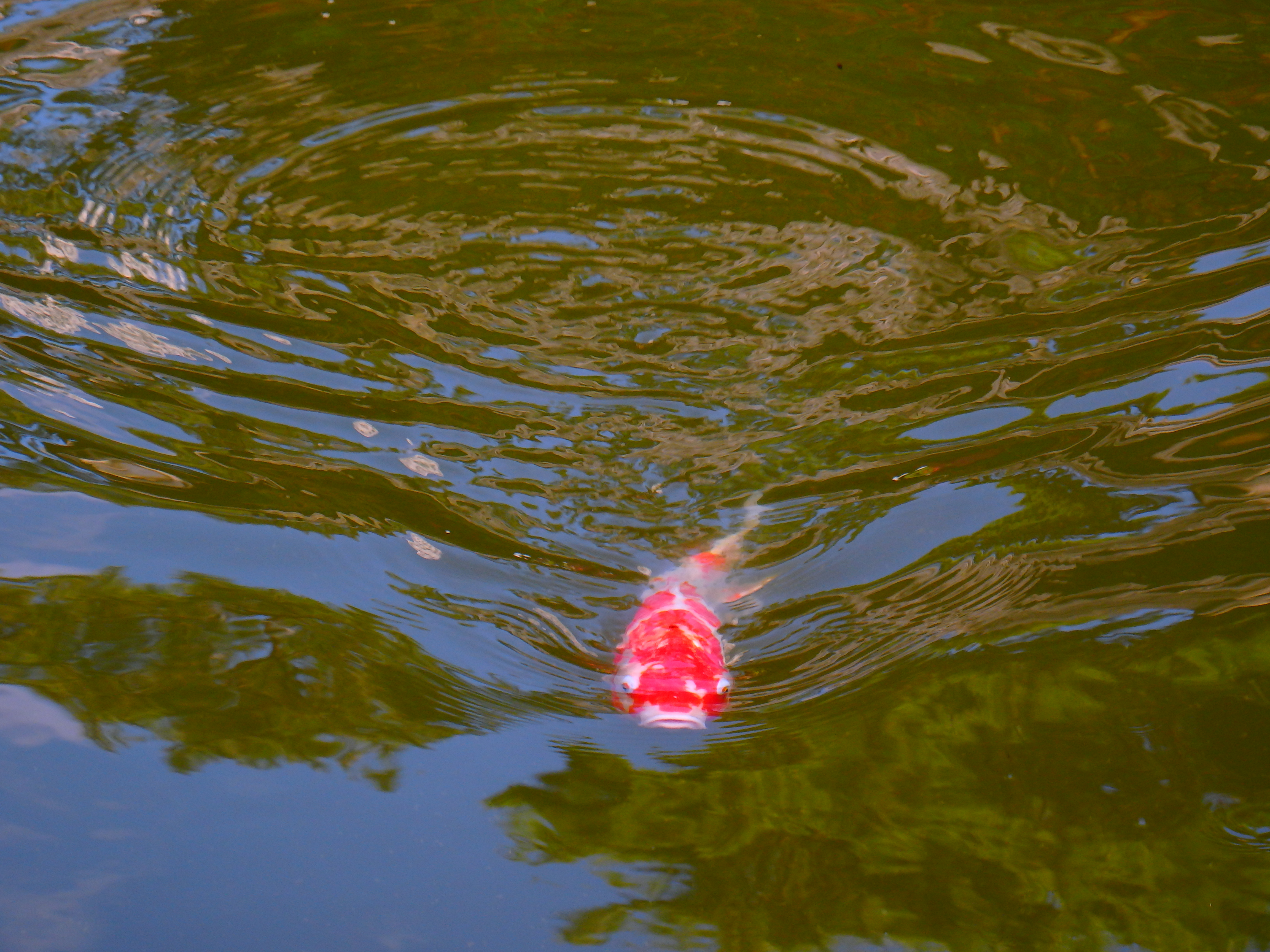 아주 큰 붉은 잉어 한 마리가 꼬리를 치며
