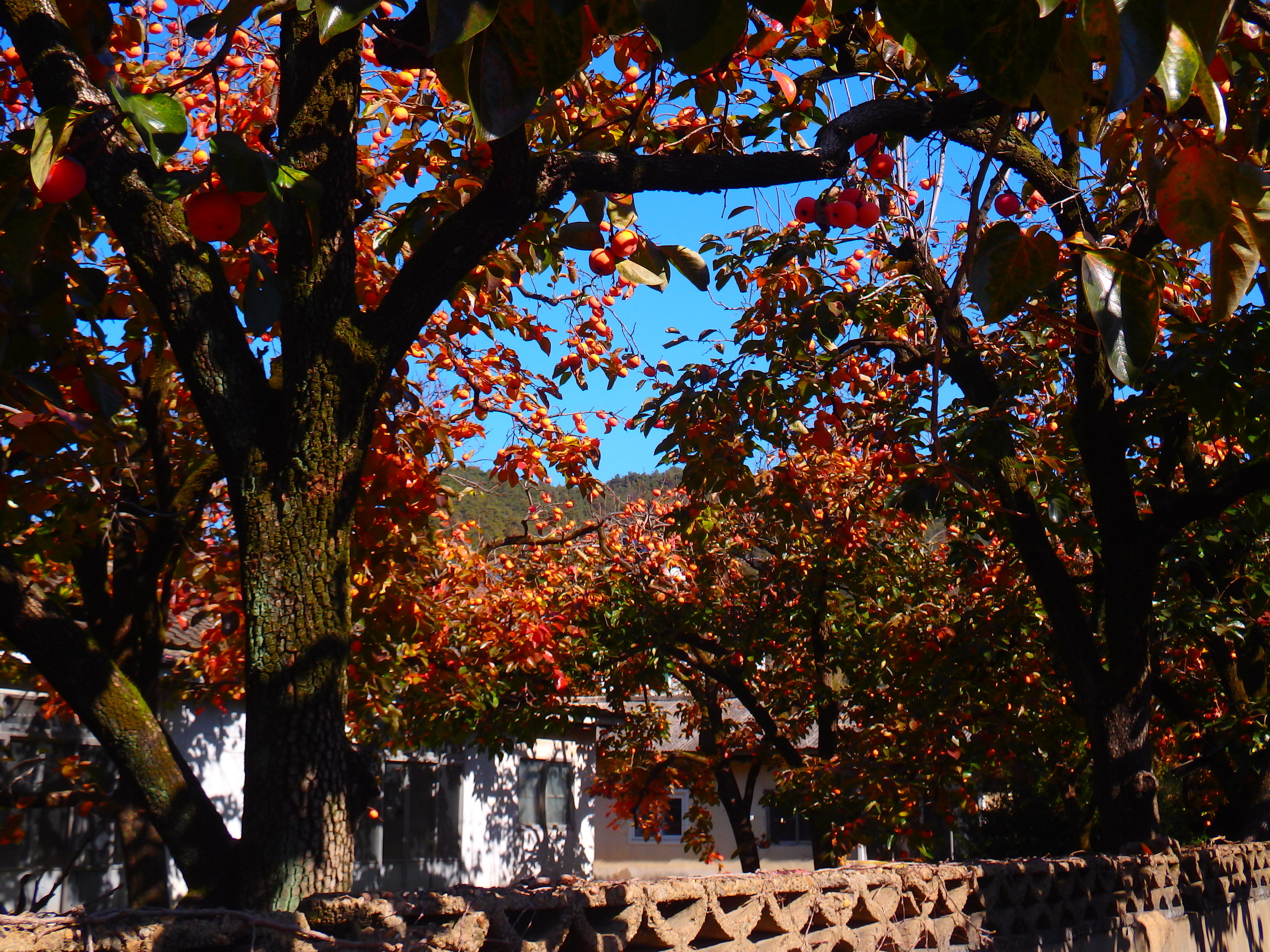 담넘어로 오롱조롱 탐스럽게 열린 감들을
