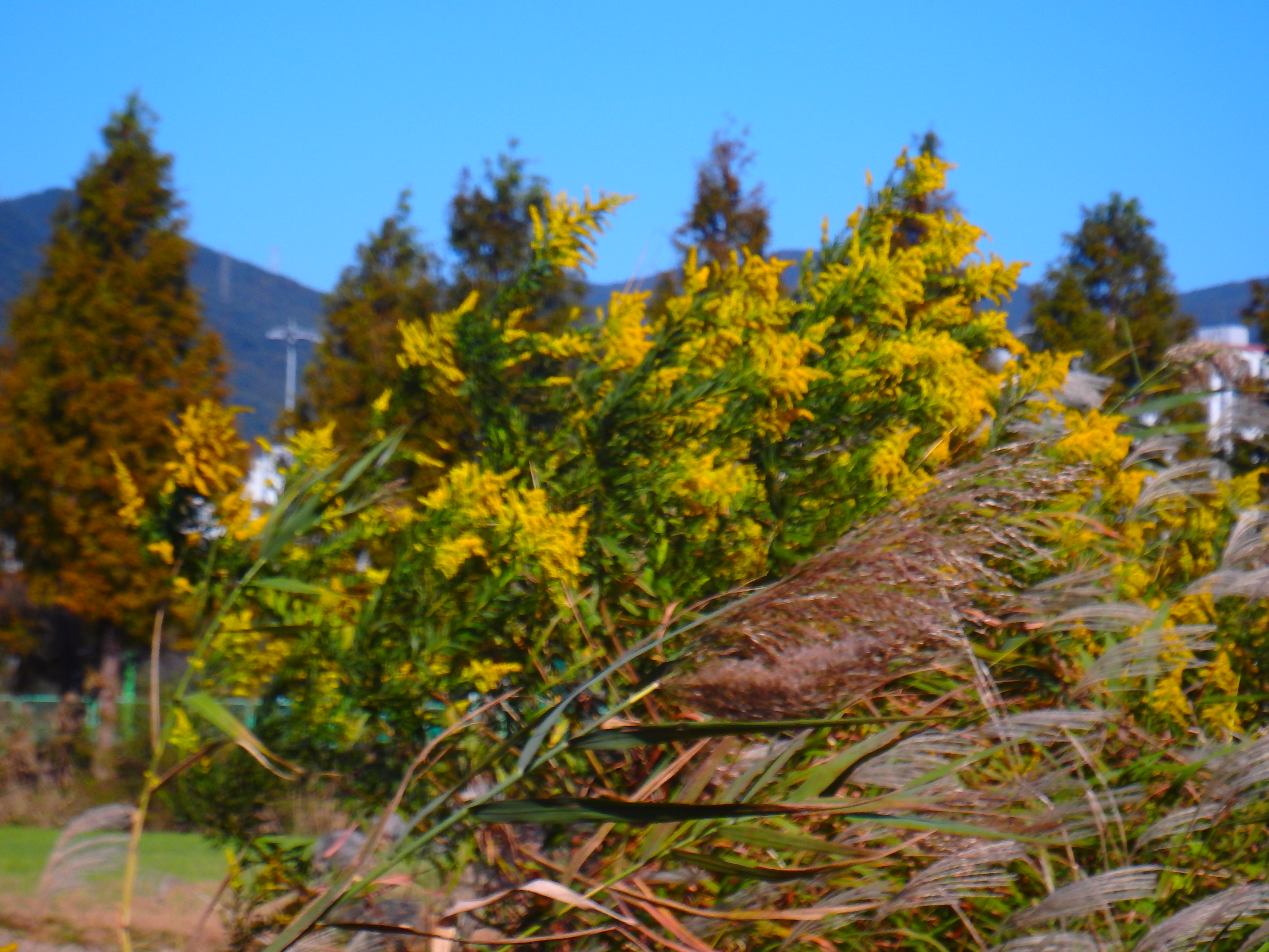 생태공원으로 가는 길목에 노란 솔나물꽃들이