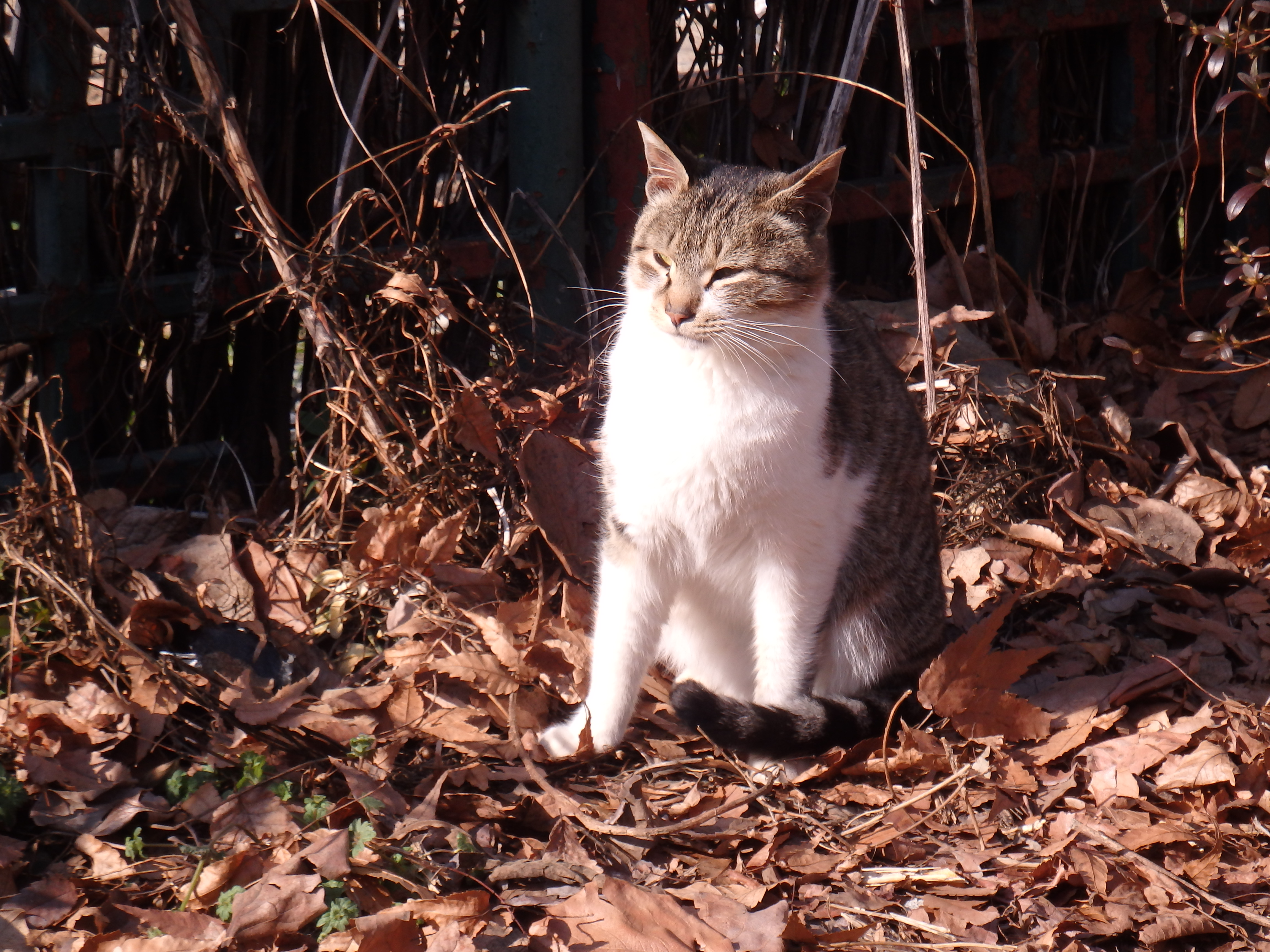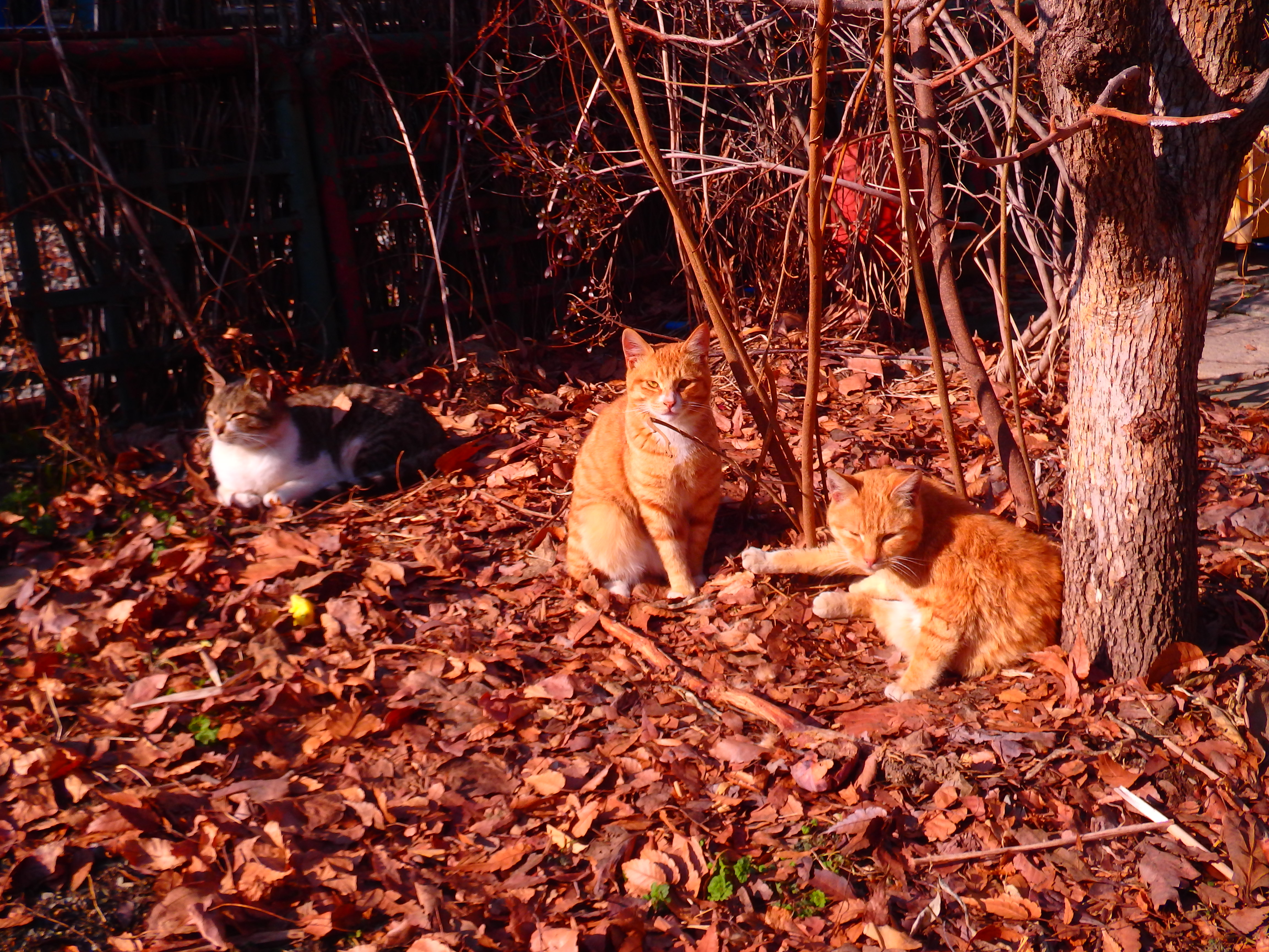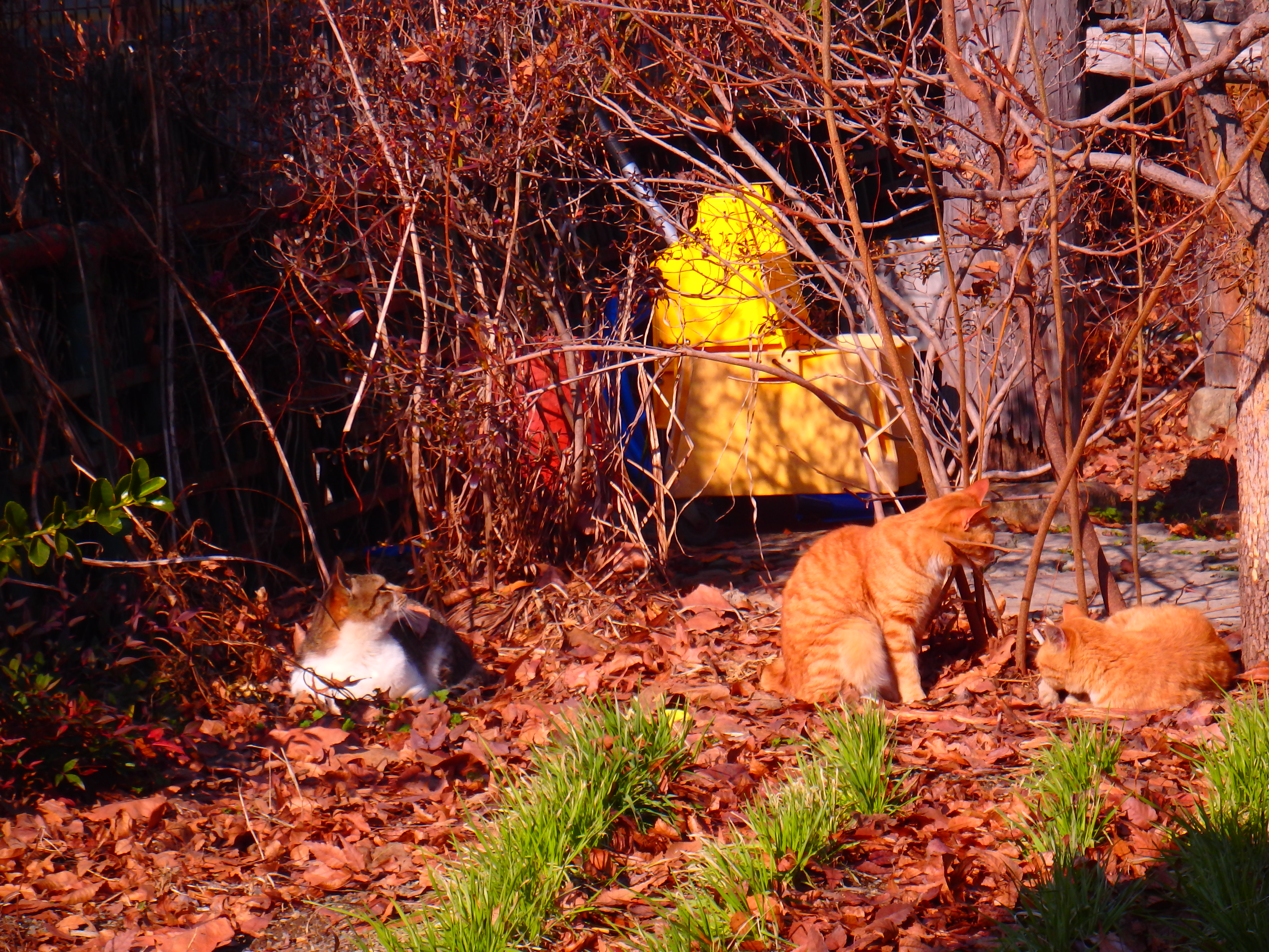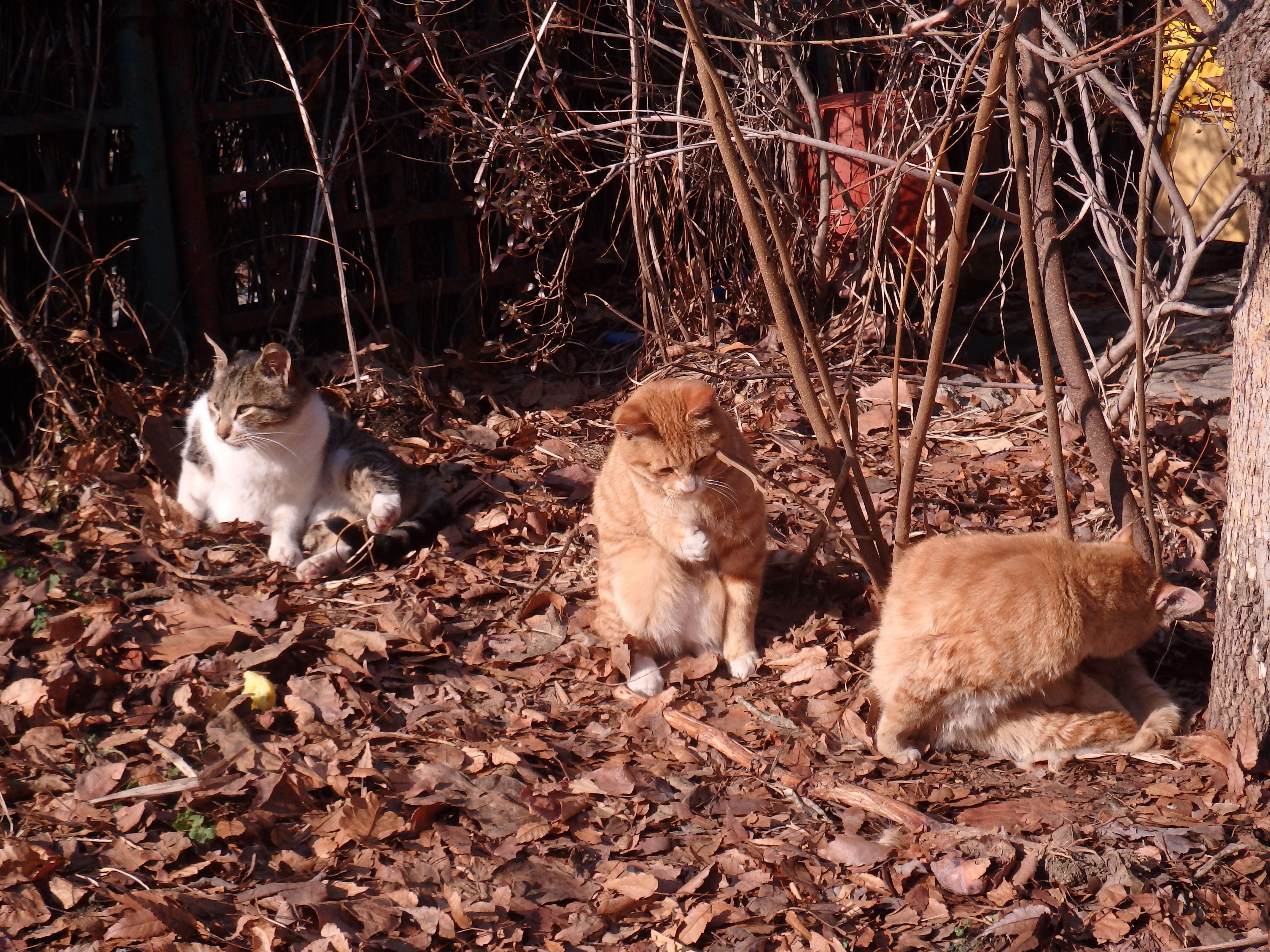 야옹이들이 모여 햇빛을 쬐고 있었다.