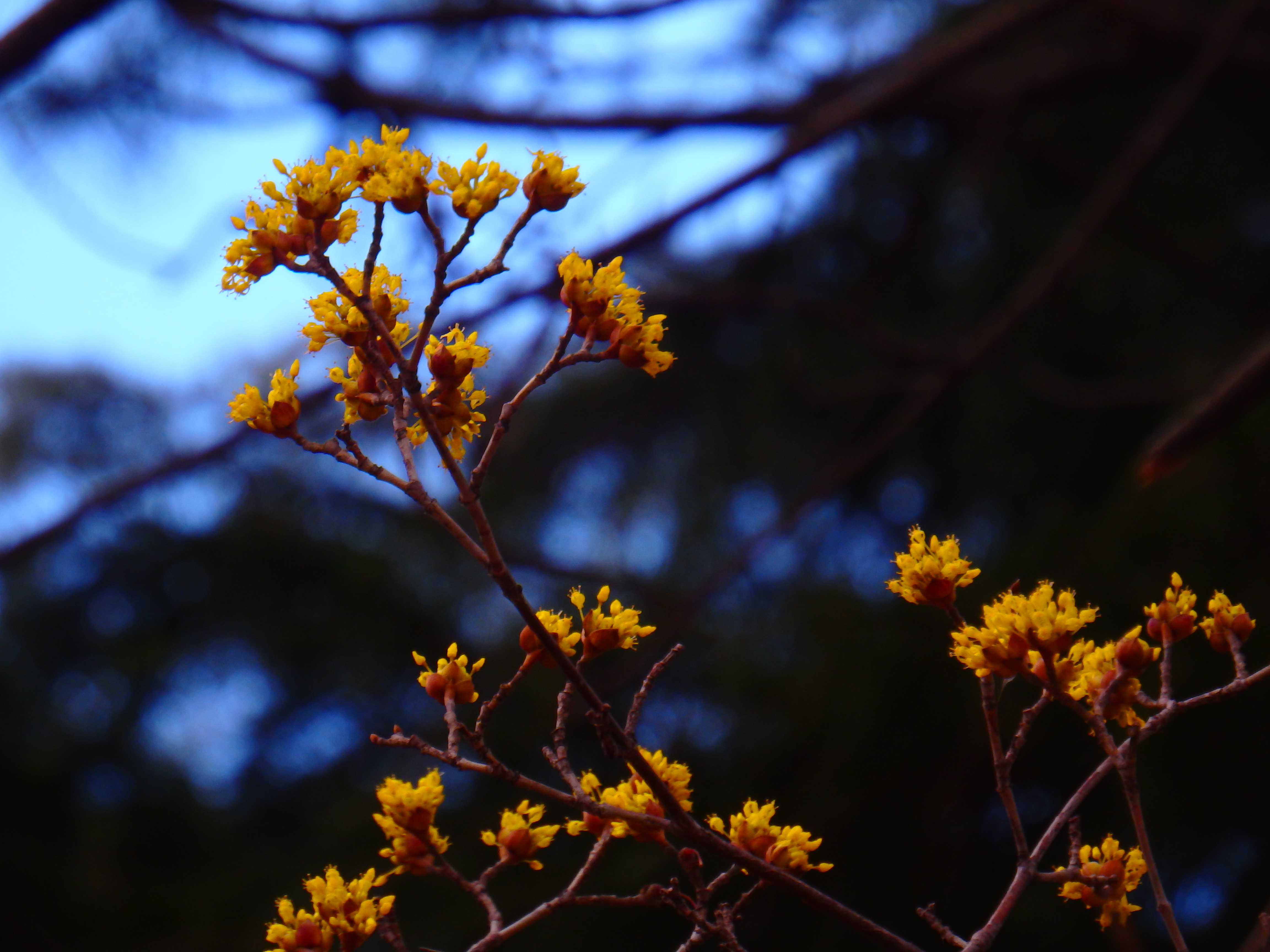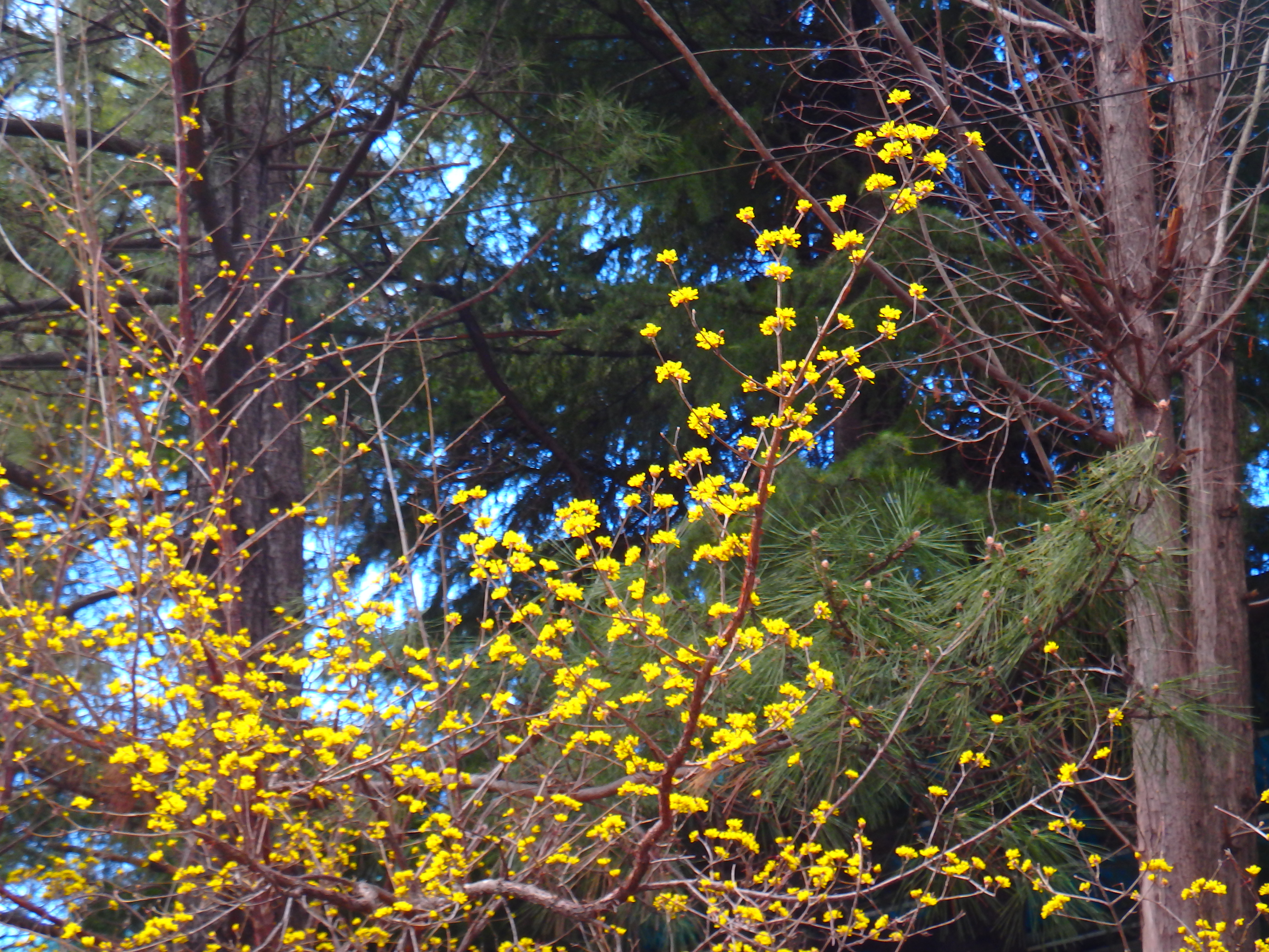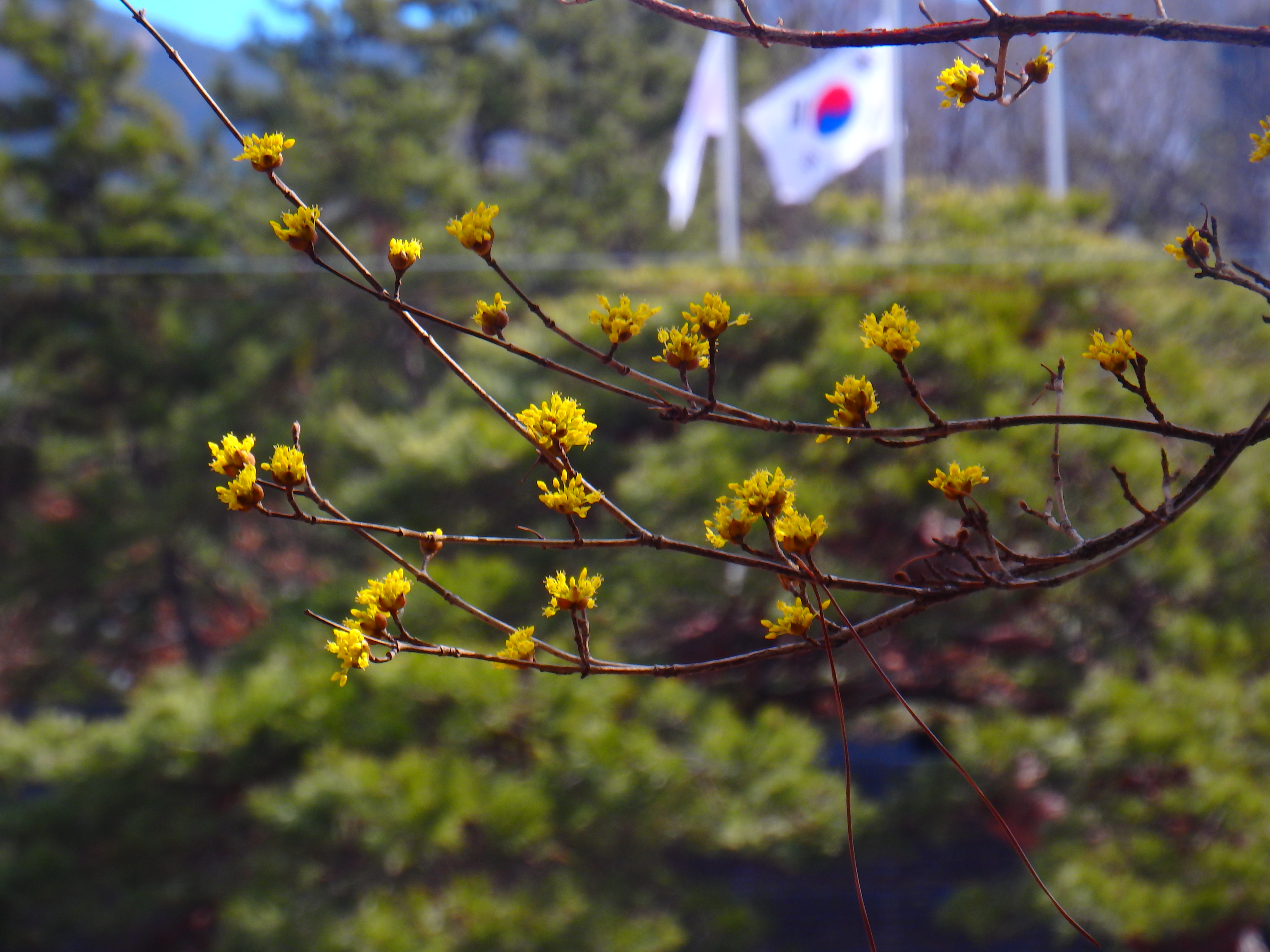 노랗게 산수유 꽃몽오리가 맺혔어요.