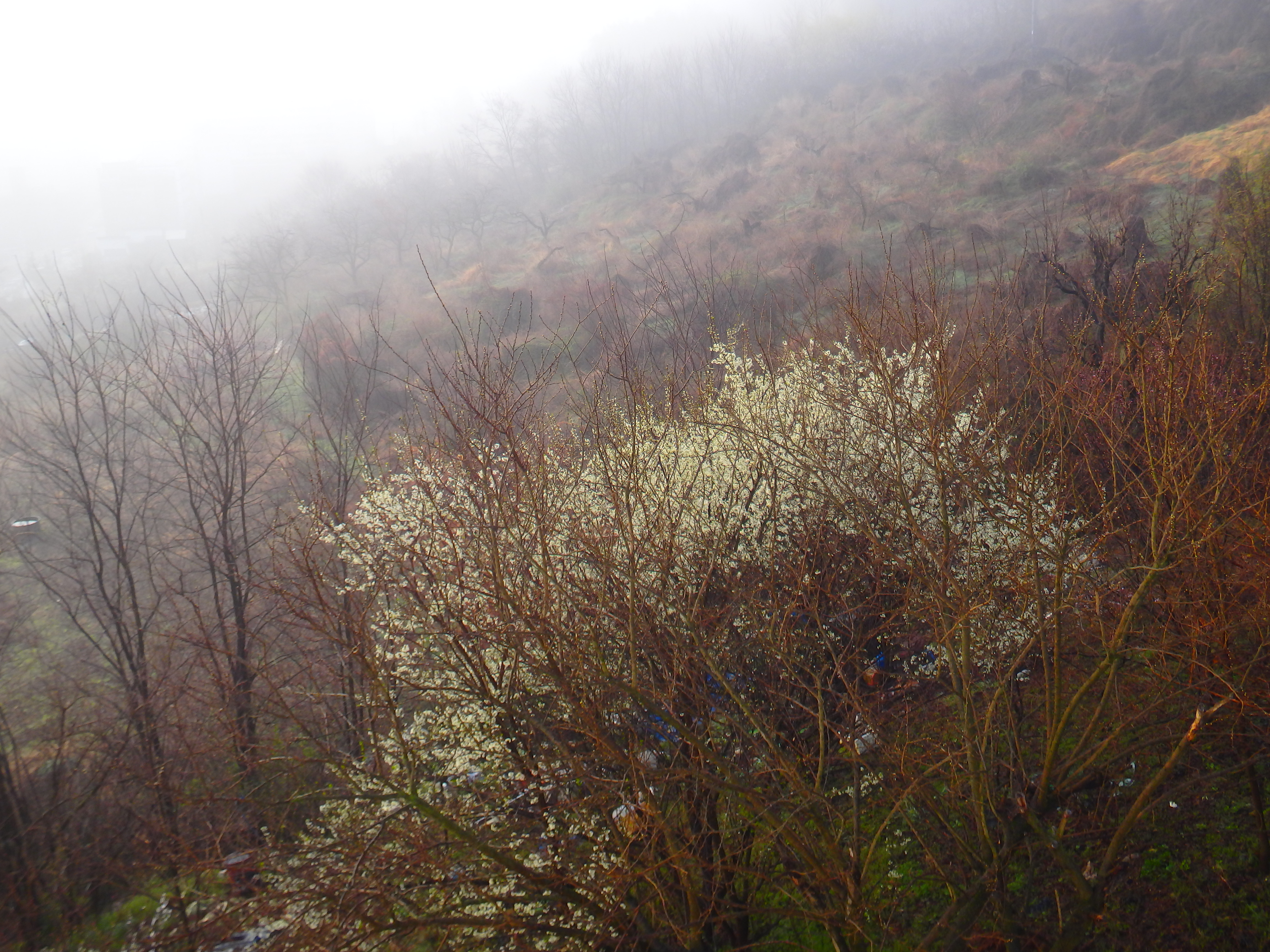 자두나무의 꽃몽오리둘이 만개하는 중이었다.