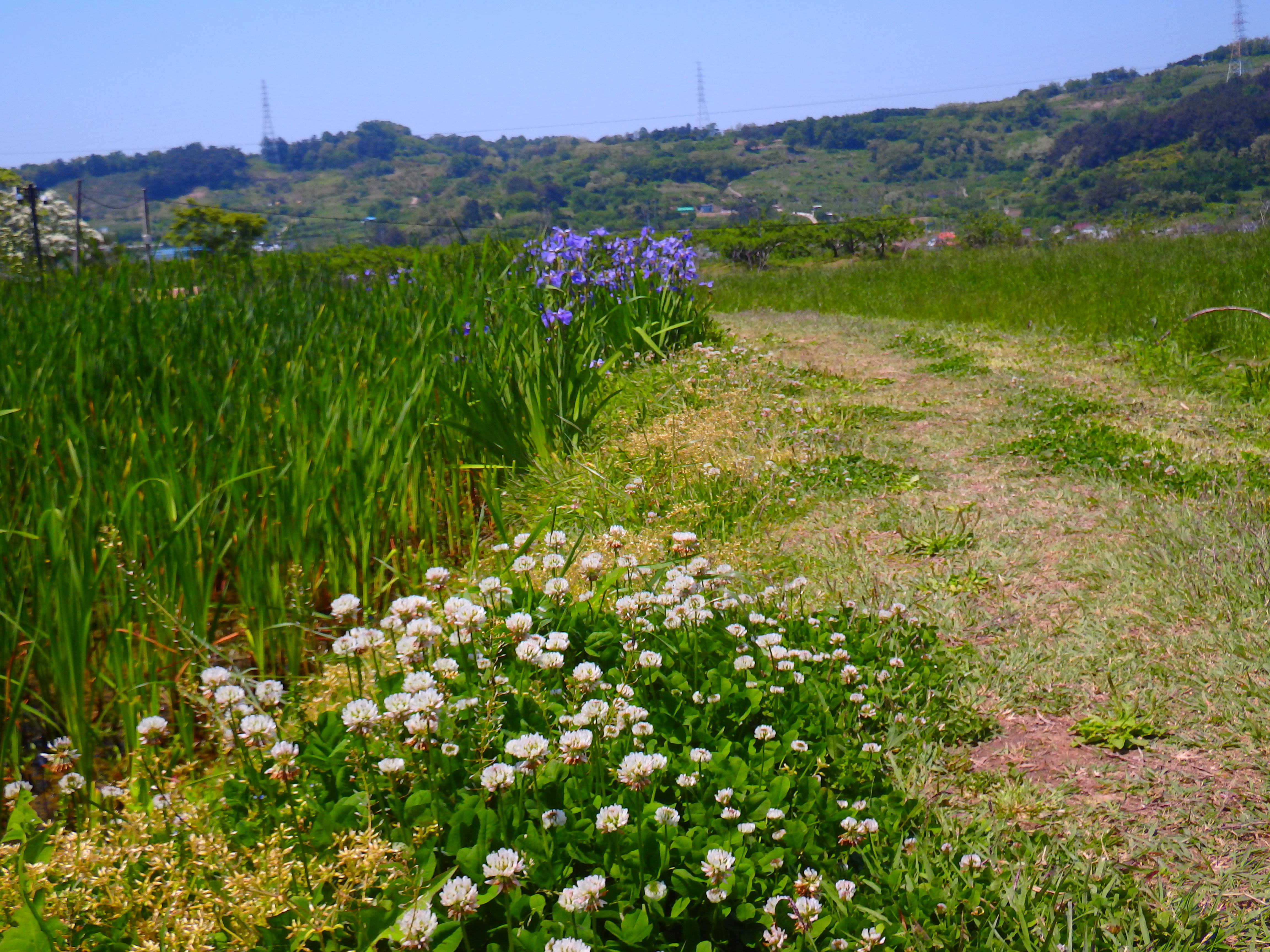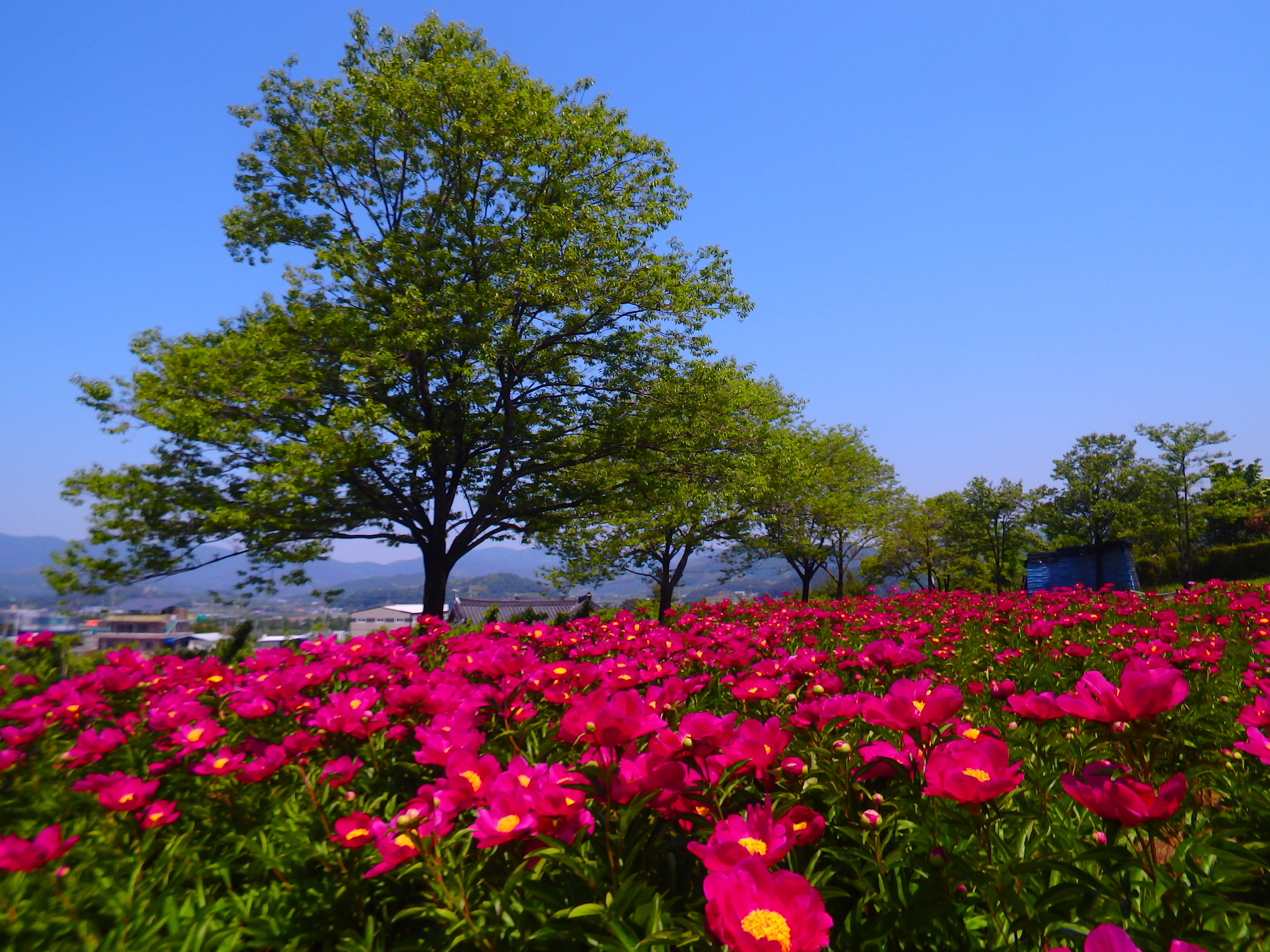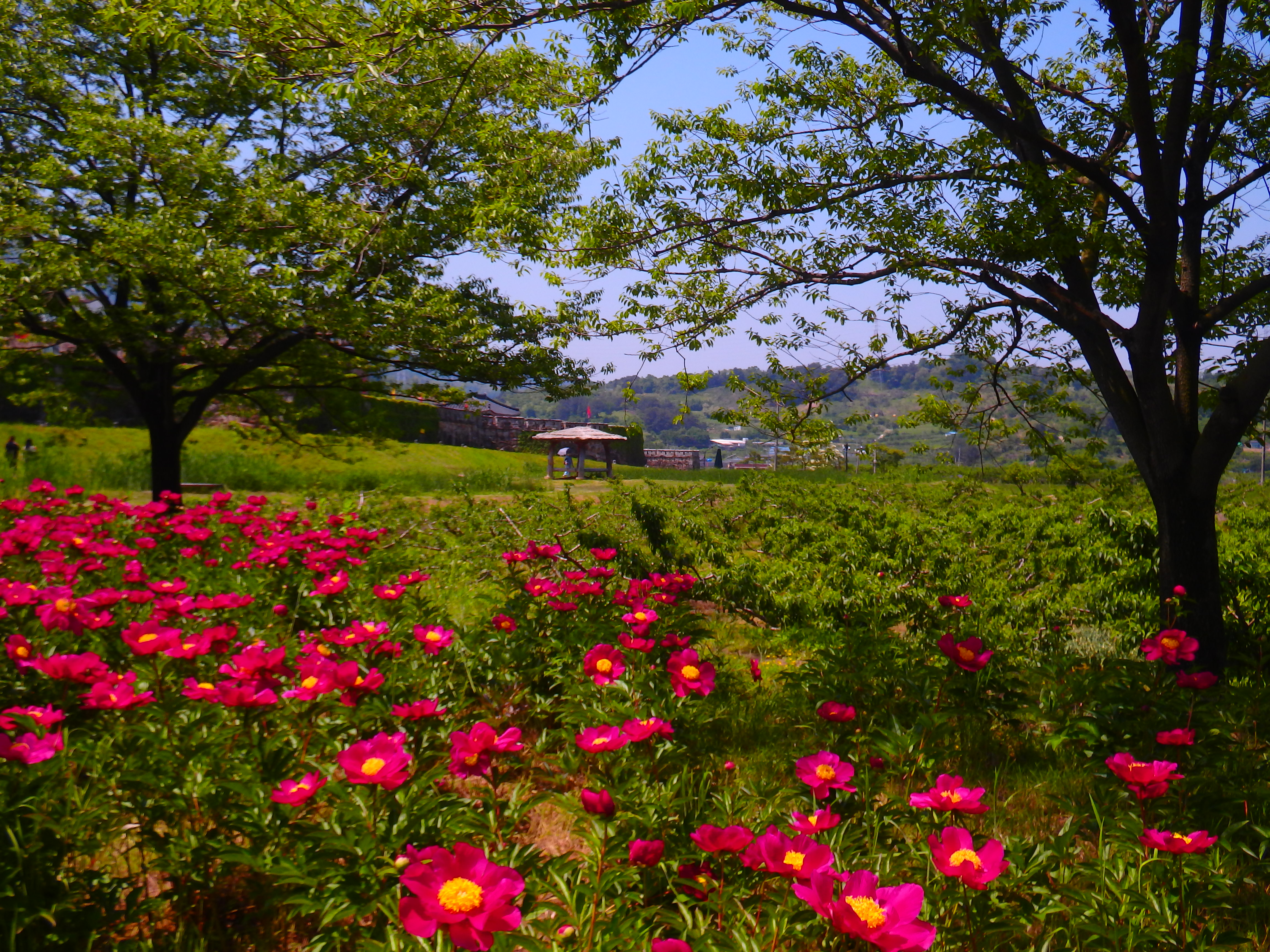 성벽 아래로 조성된 작약꽃밭과 어울린