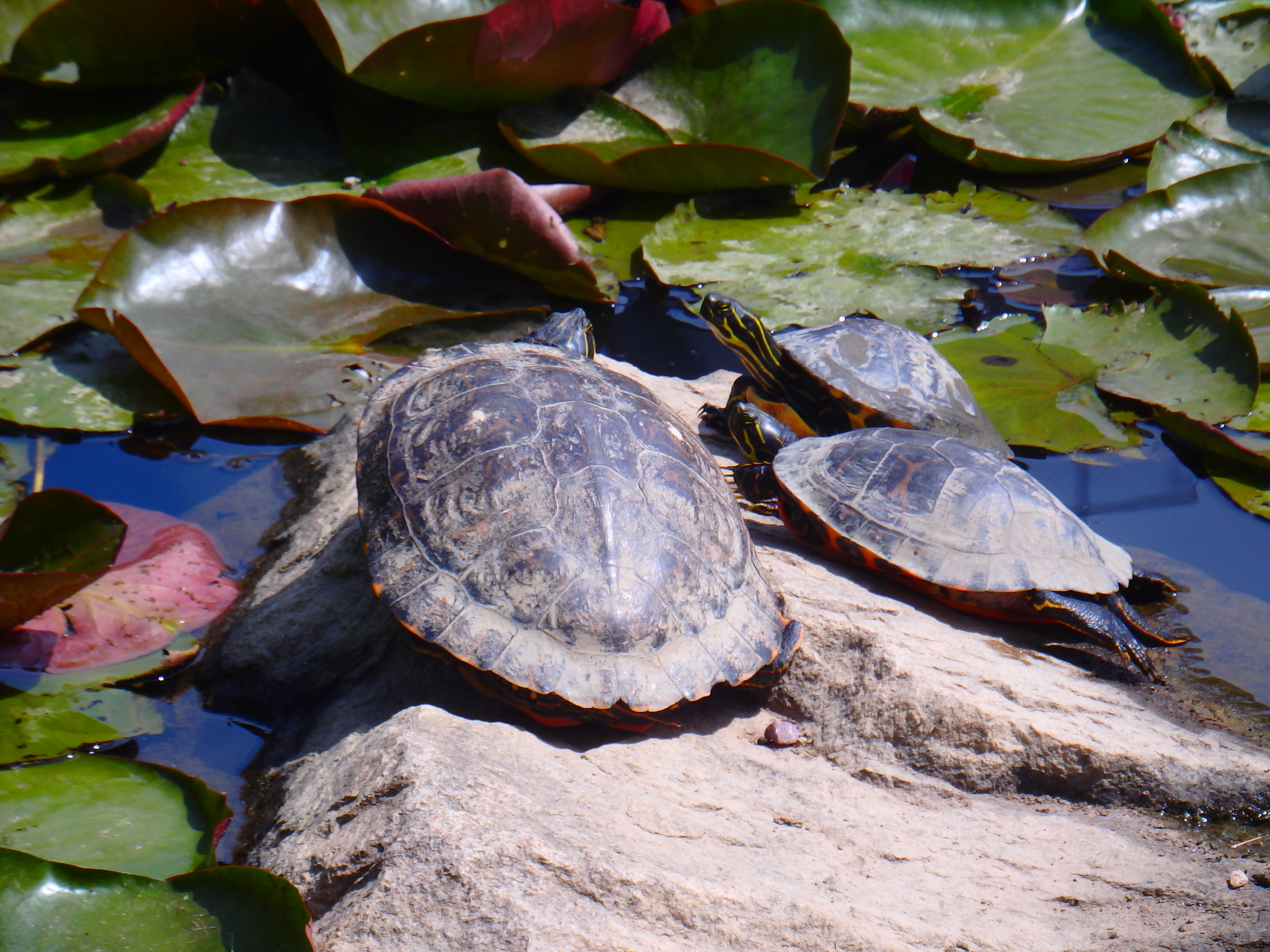 아침 잠에서 깨어난 분홍빛 수련꽃들이
