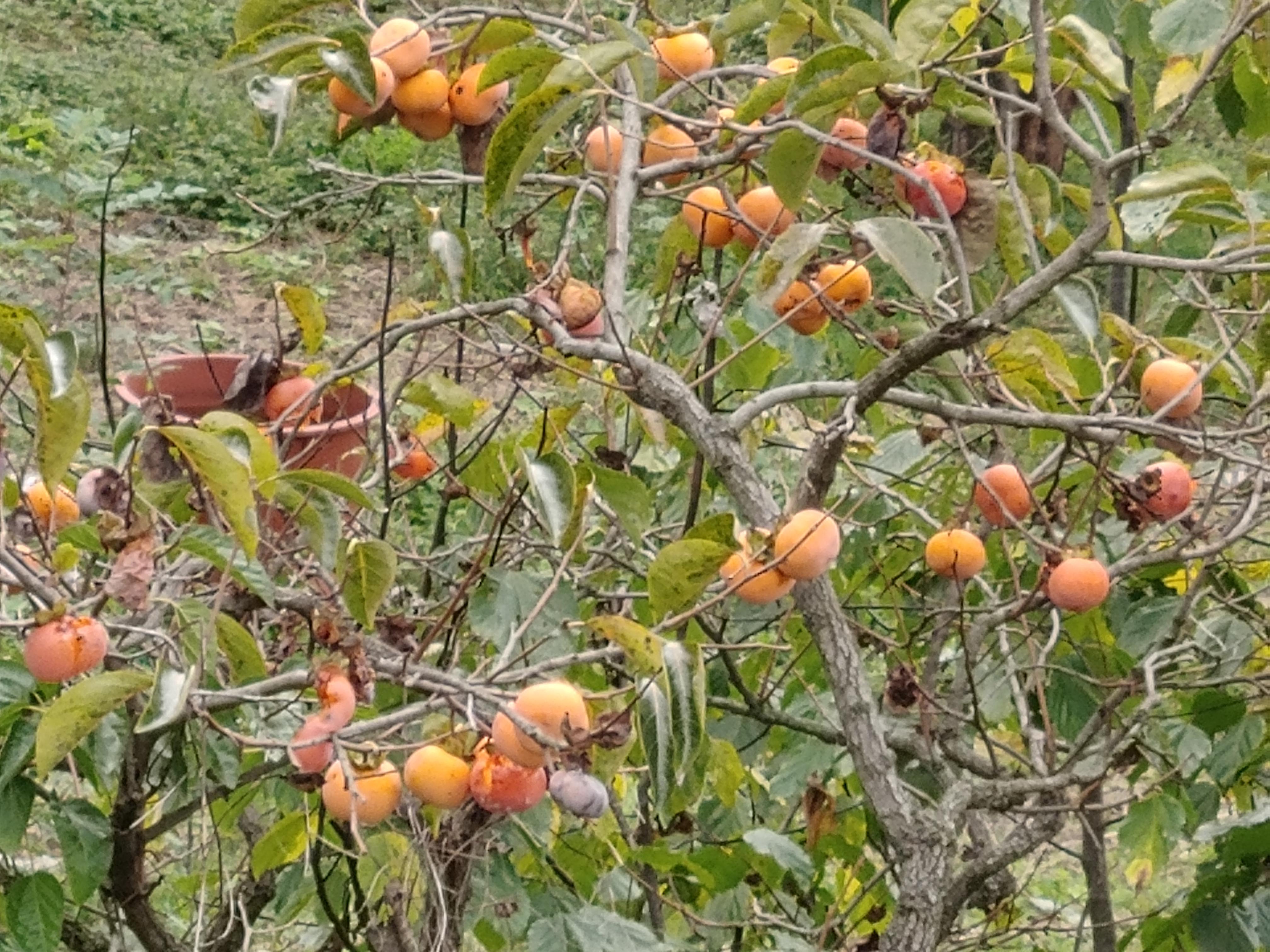 작은 밭의 울타리에 심겨진 감나무는