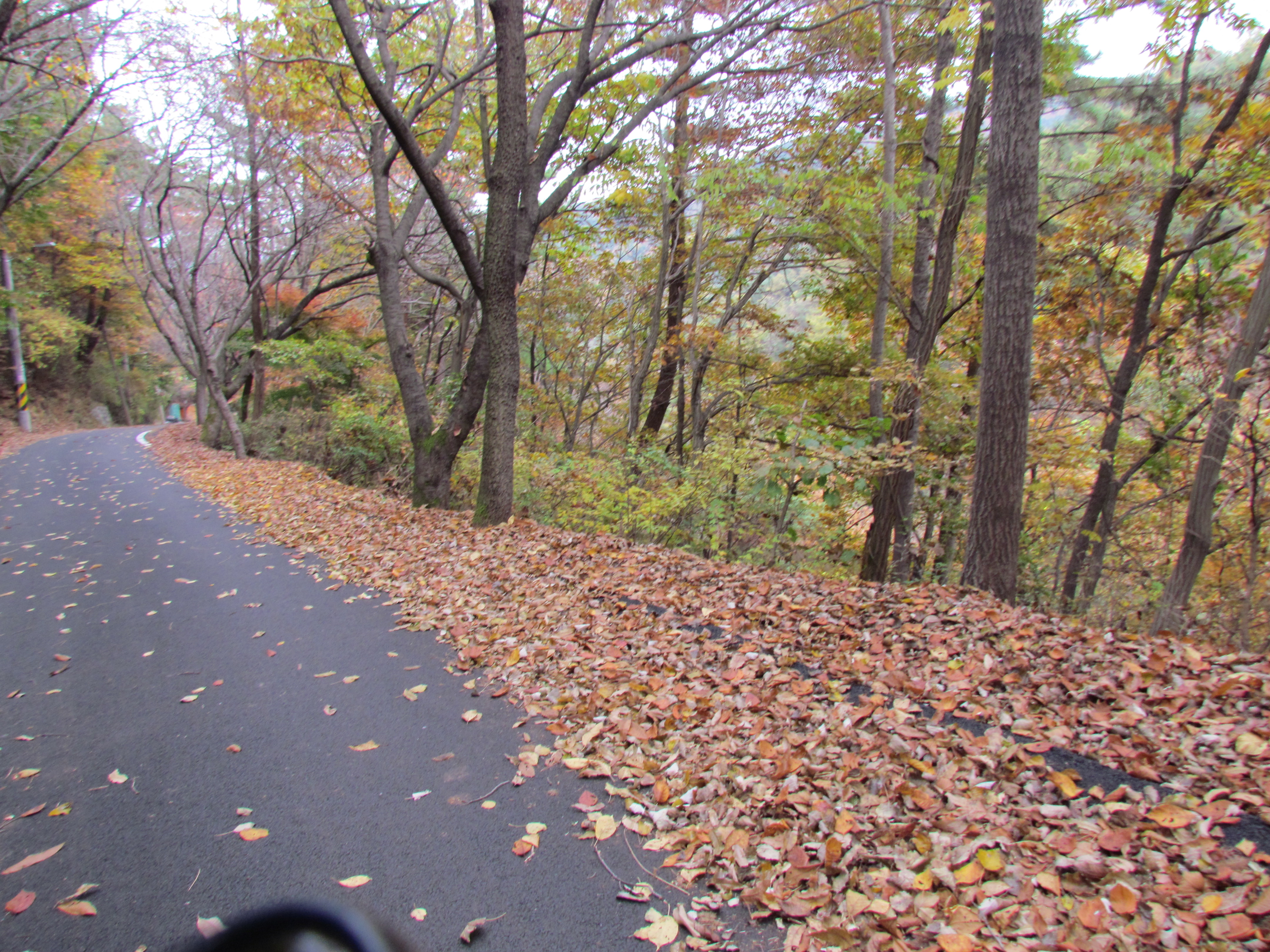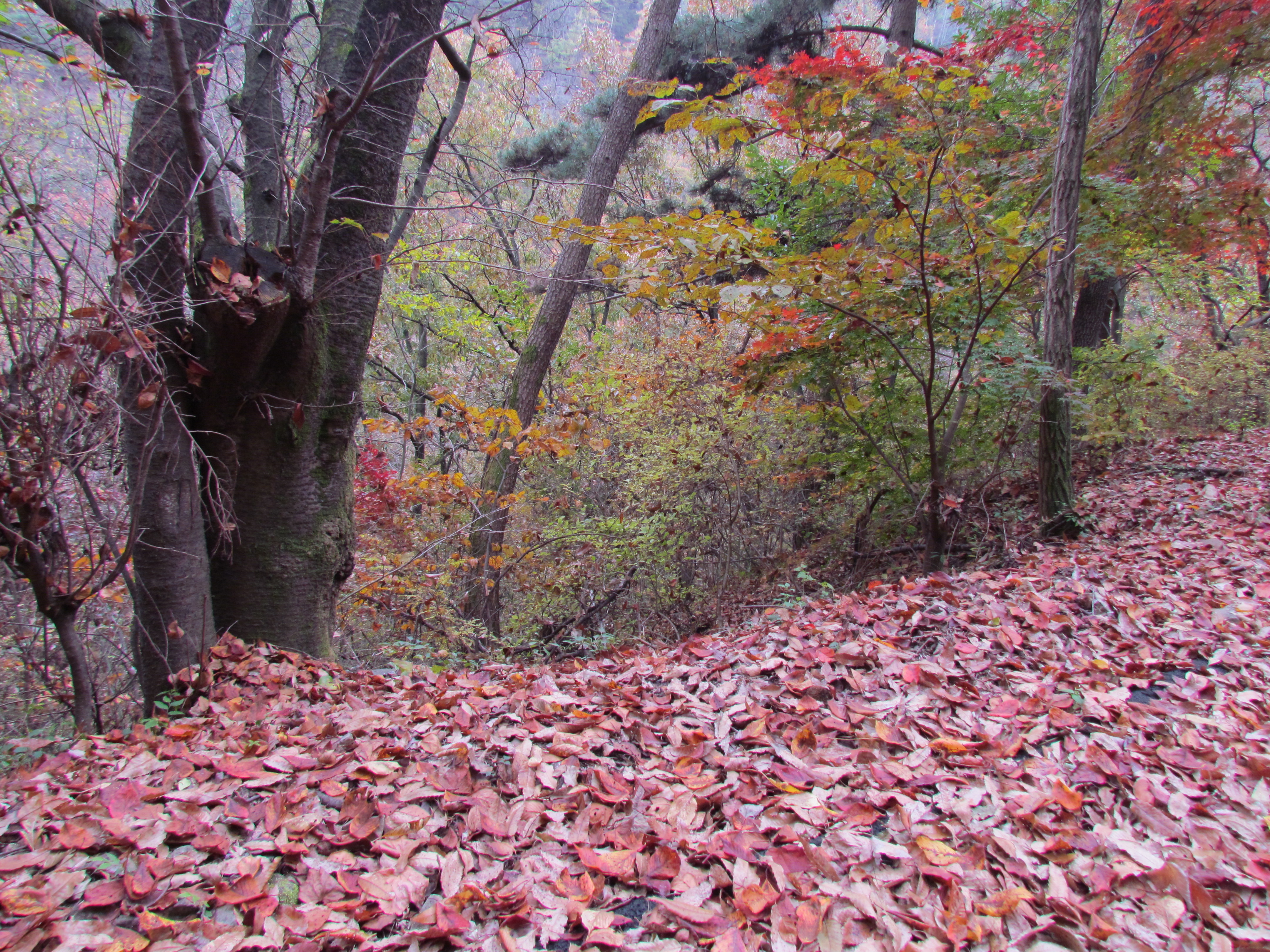 산속은 하염없이 떨어지는 낙엽들만
