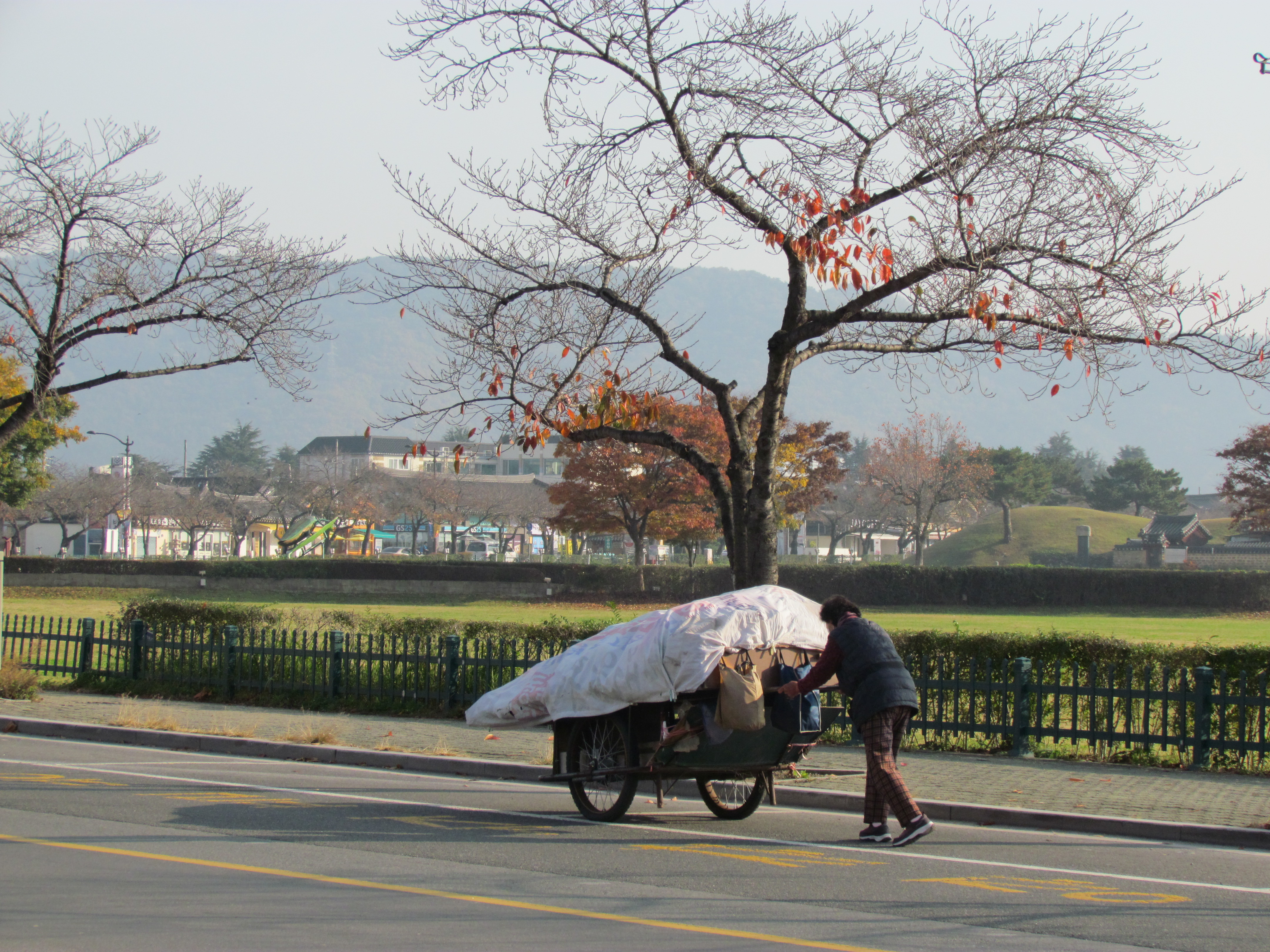 리어카에 짐을 잔뜩 밀고 가시는