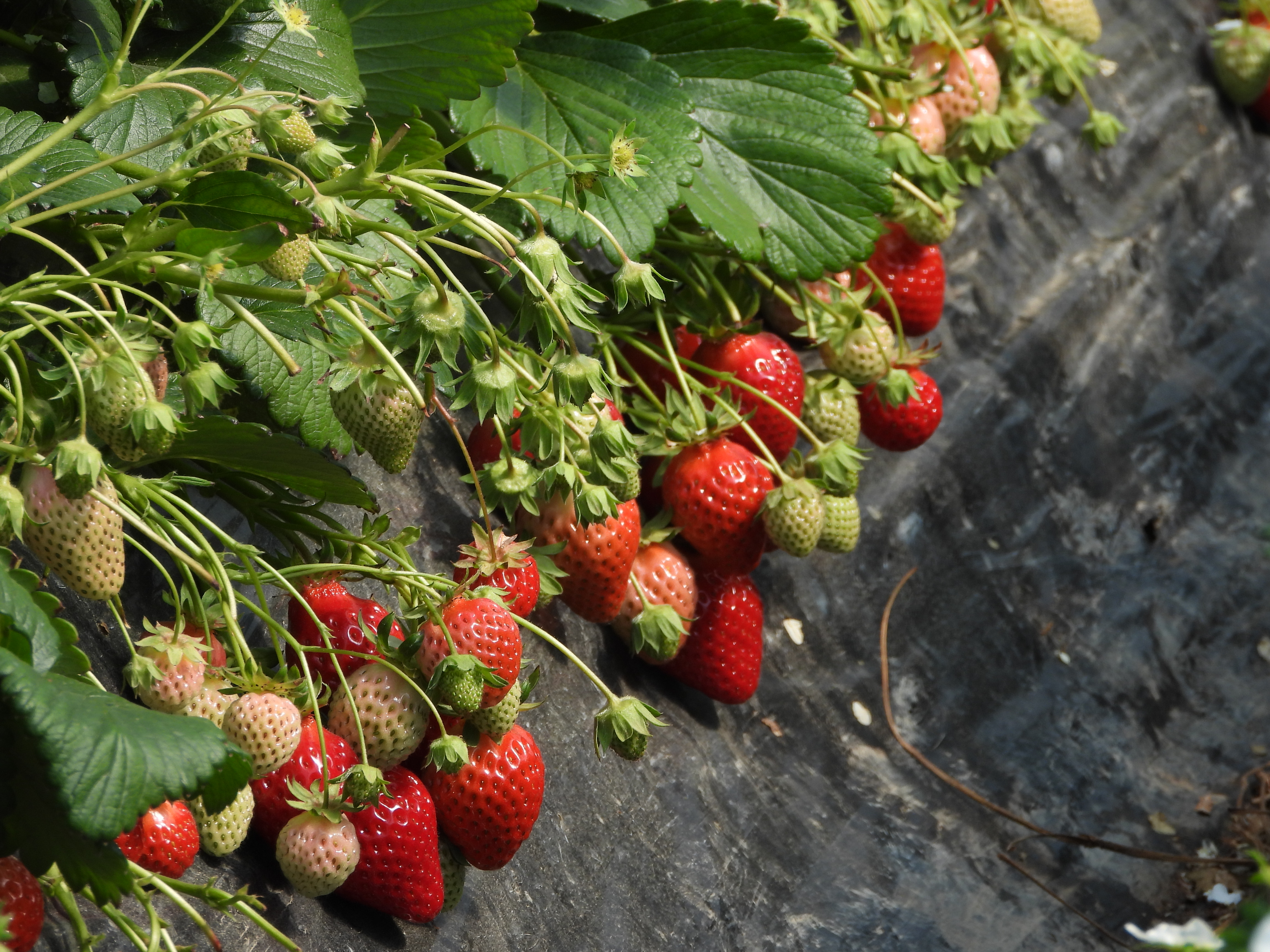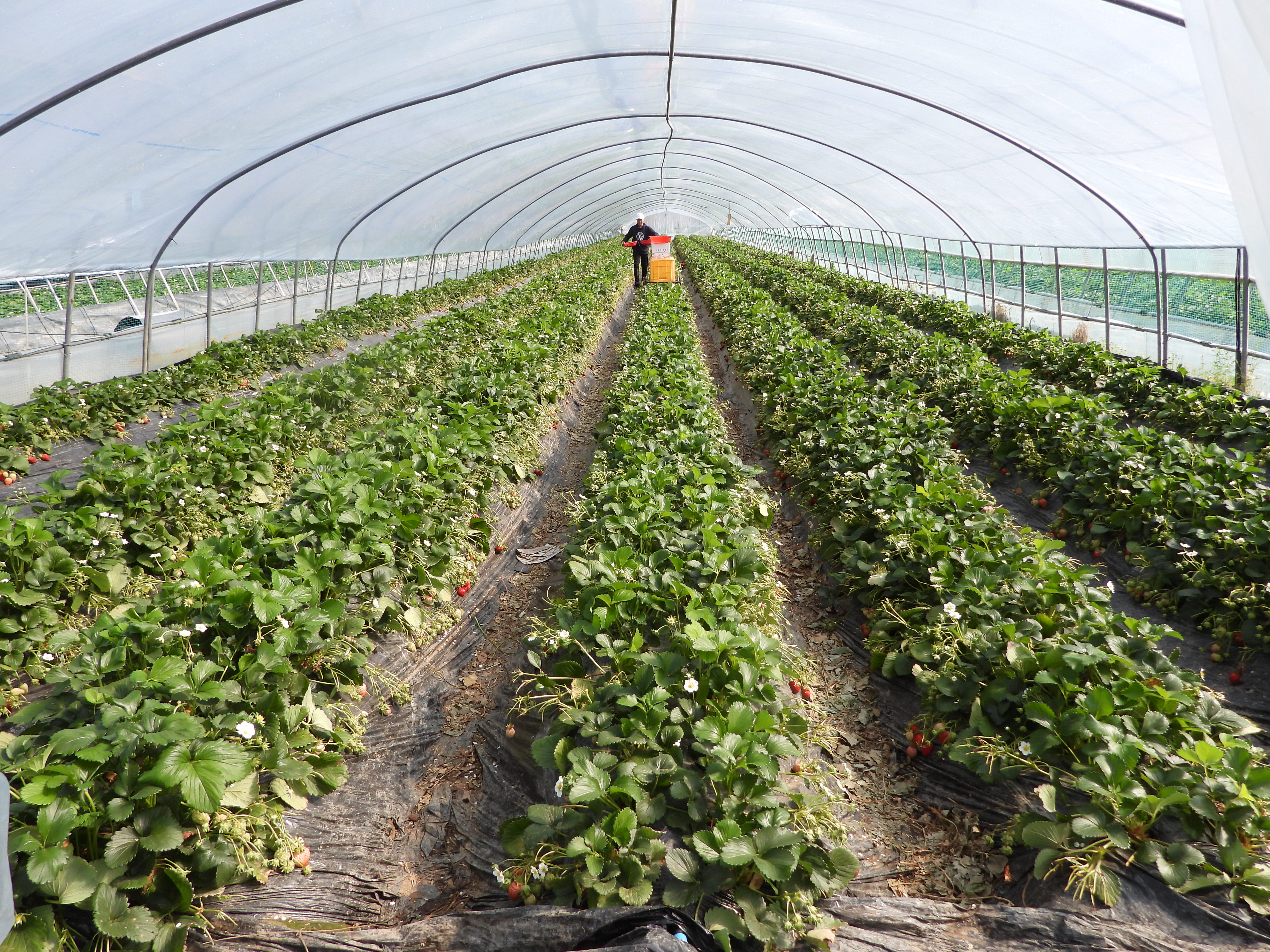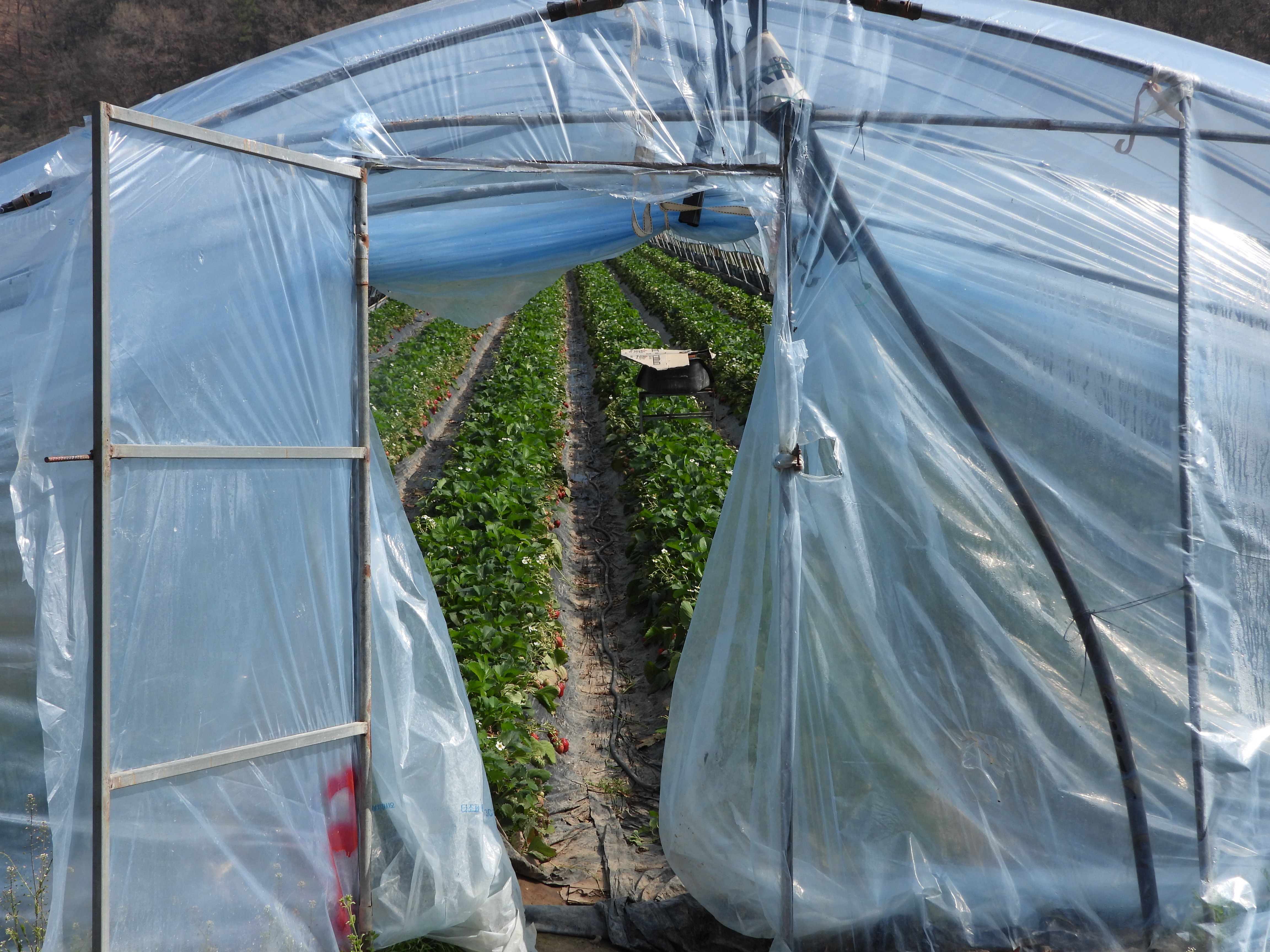 강변 옆의 비닐하우스 딸기밭엔