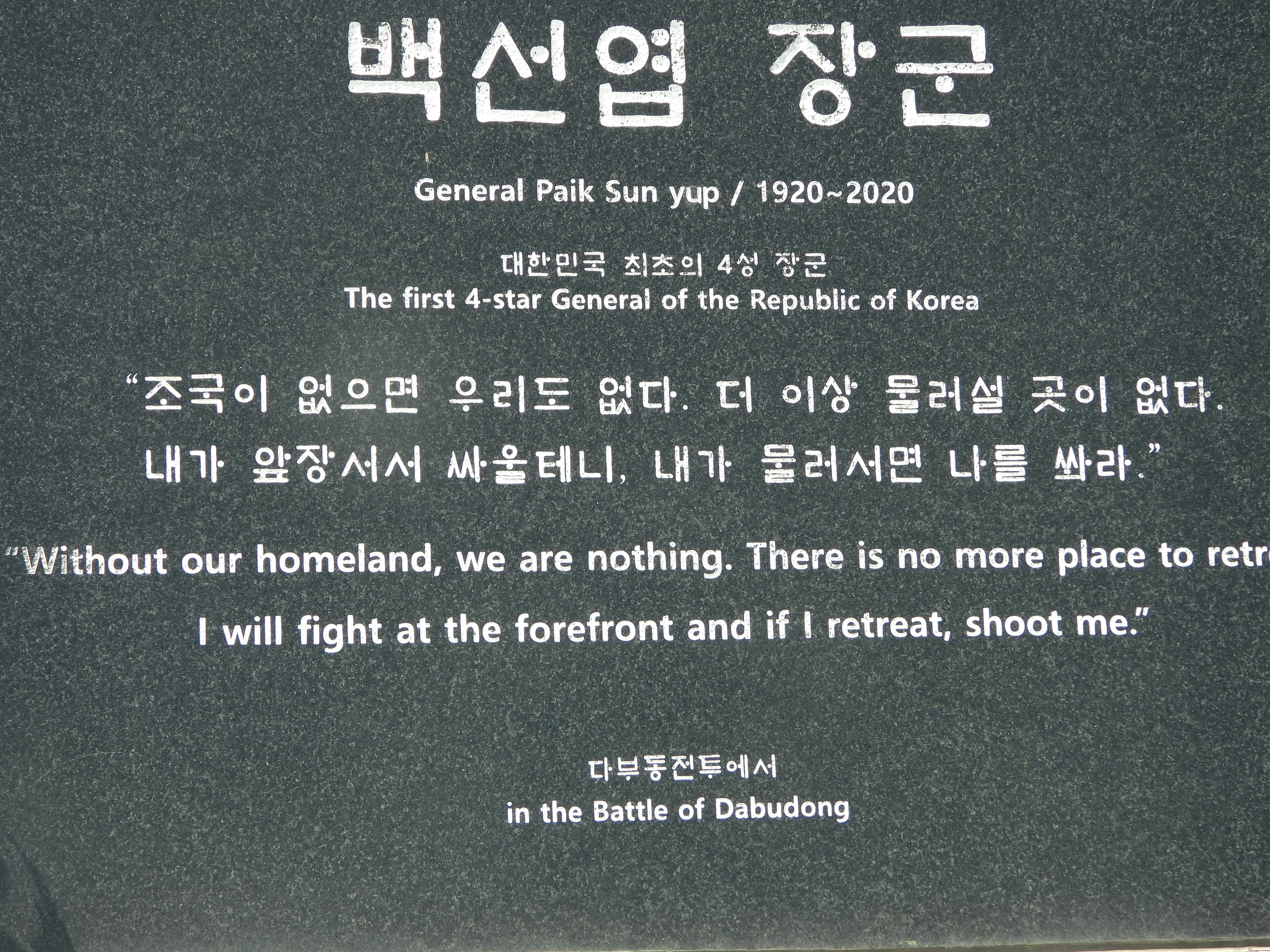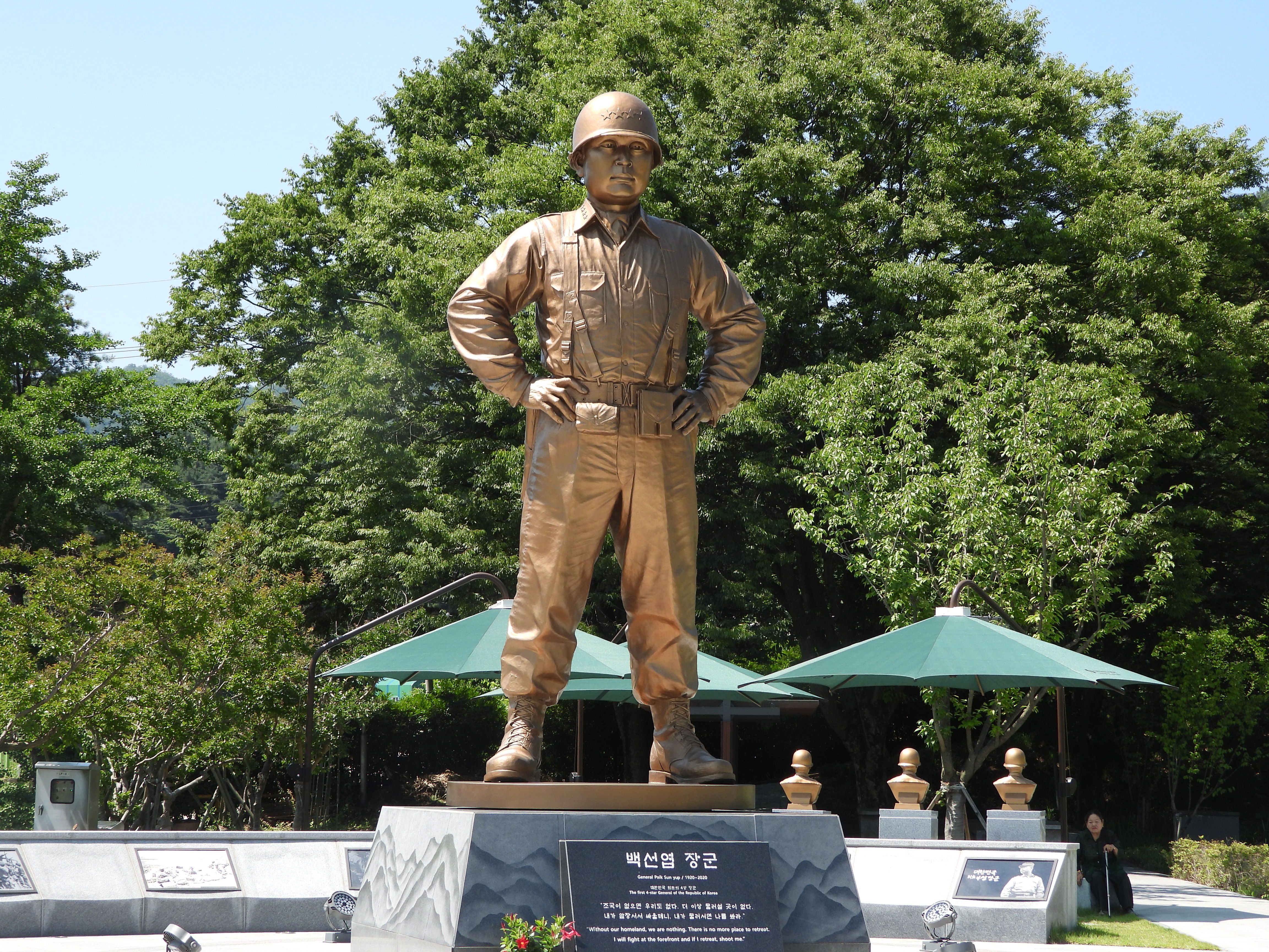 남편도 백선엽 장군의 동상 앞에서