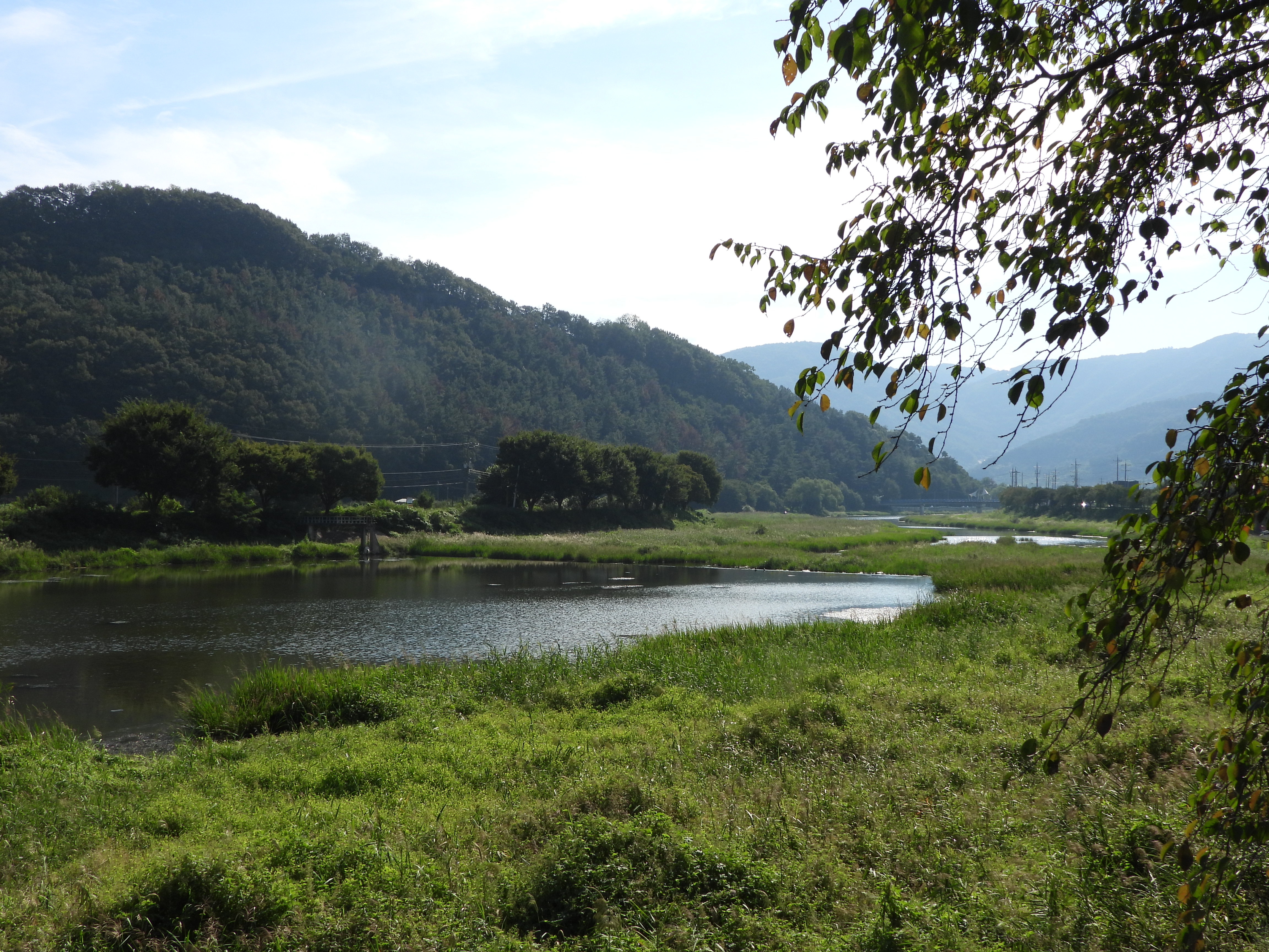나뭇잎이 한 잎씩 물들어 가는 강변의