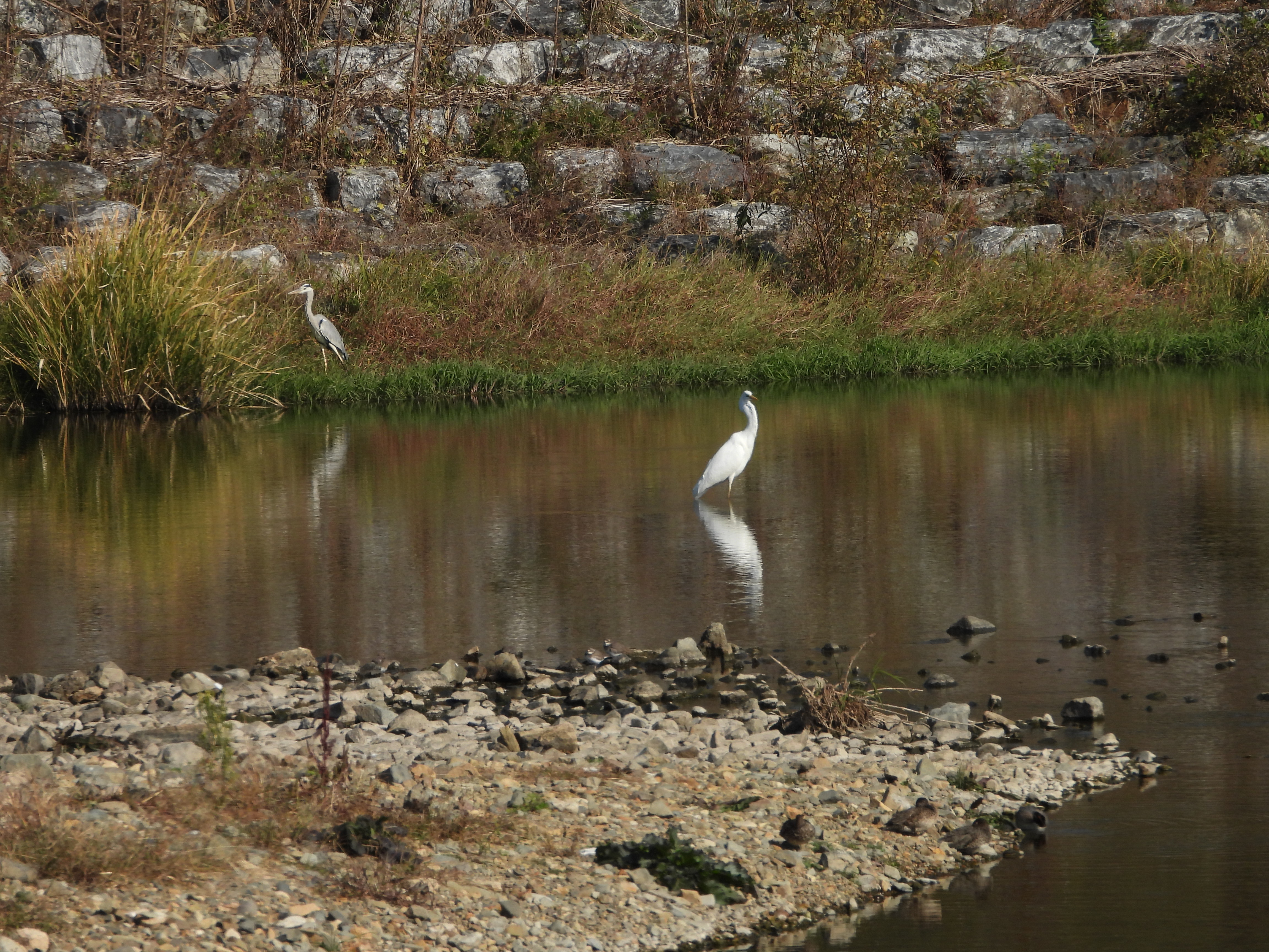왜가리와 백로는 서로를 견제하며