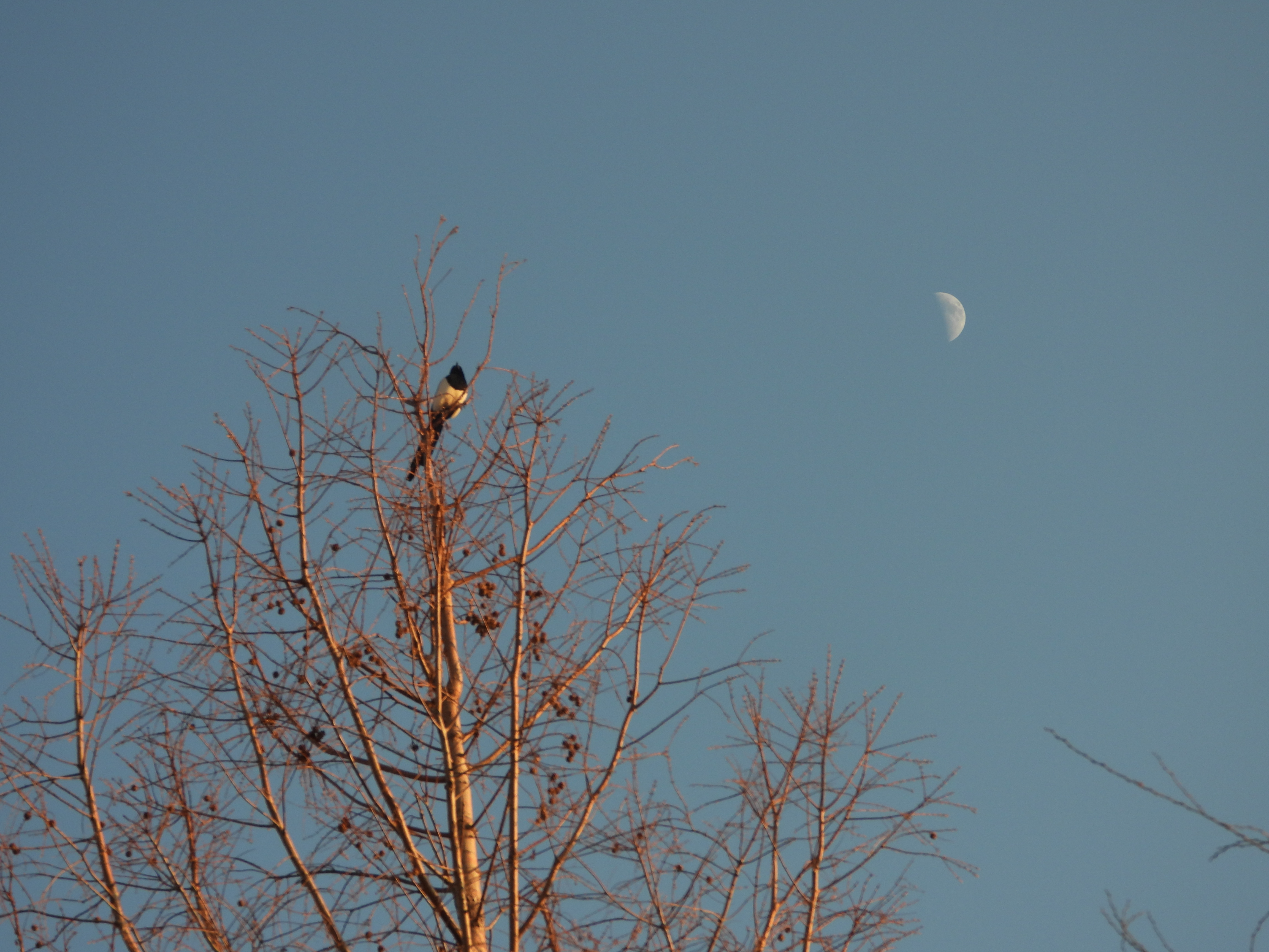 까치가 석양을 보며 울고 있었답니다.