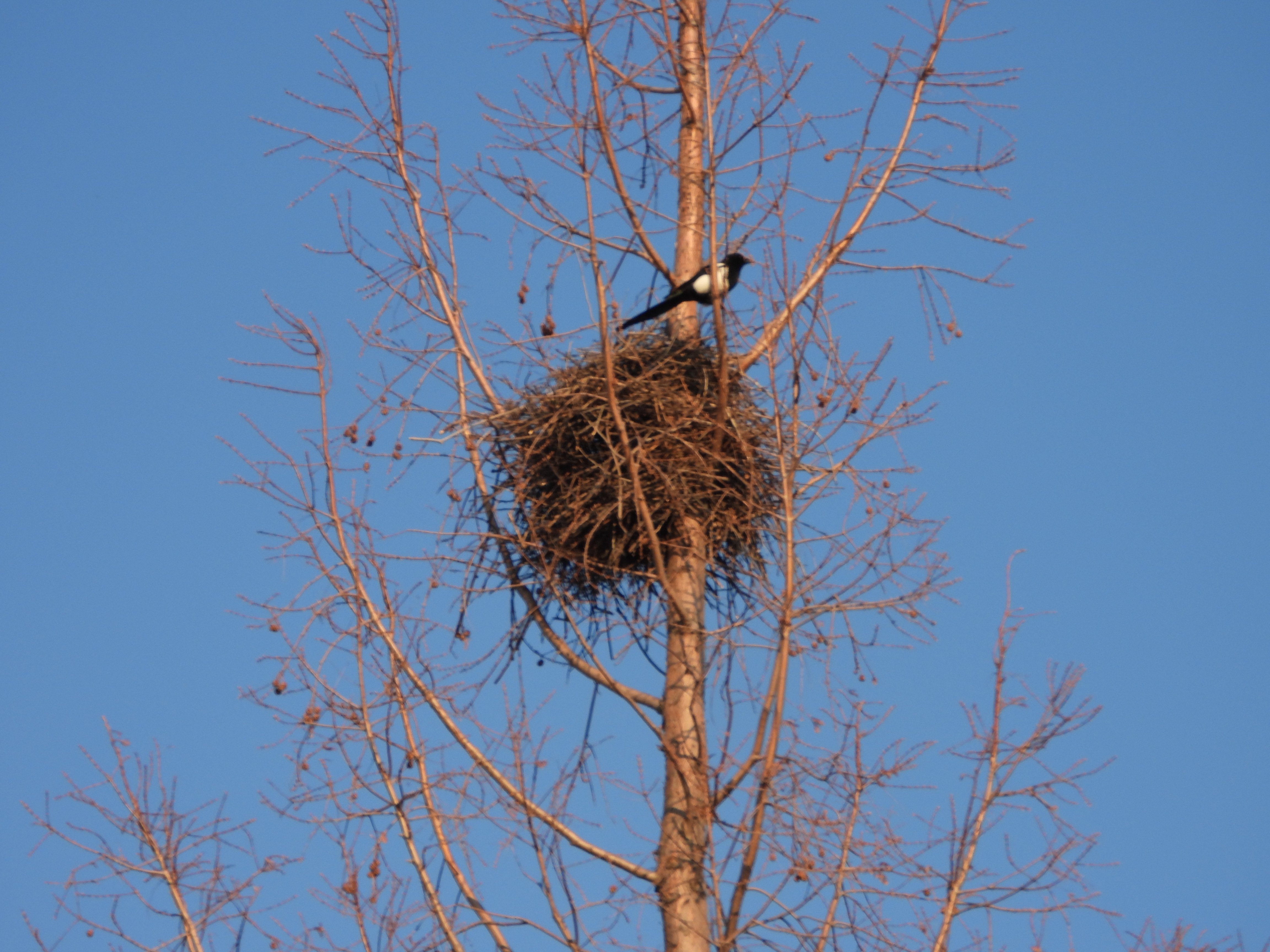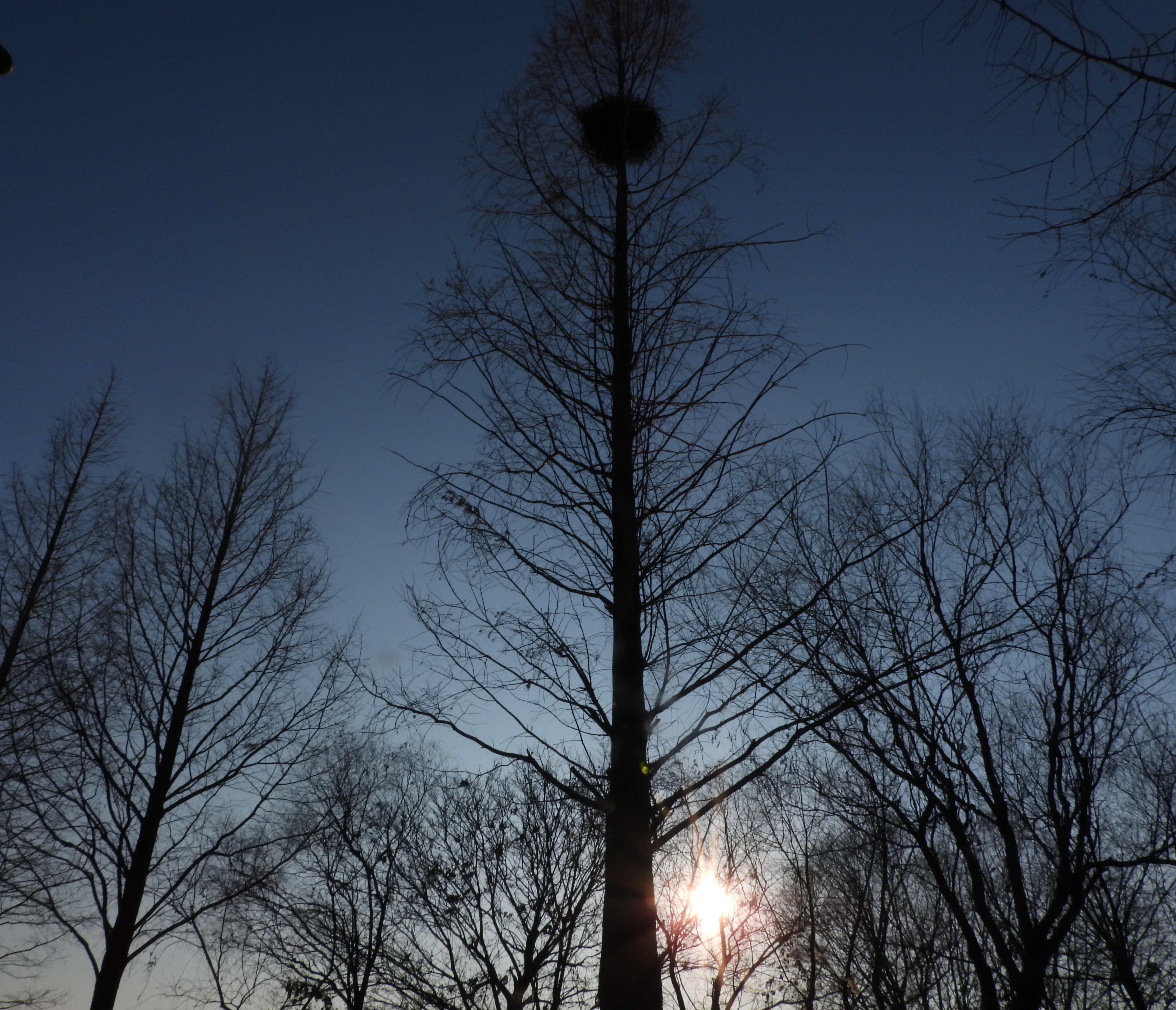 산책하다 보니 높은 나무에 둥지를 튼